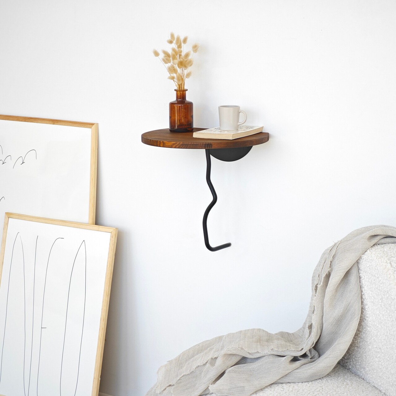 Raft de perete, Neostill, Leo, 35x35 cm, Lemn, Castan / Negru