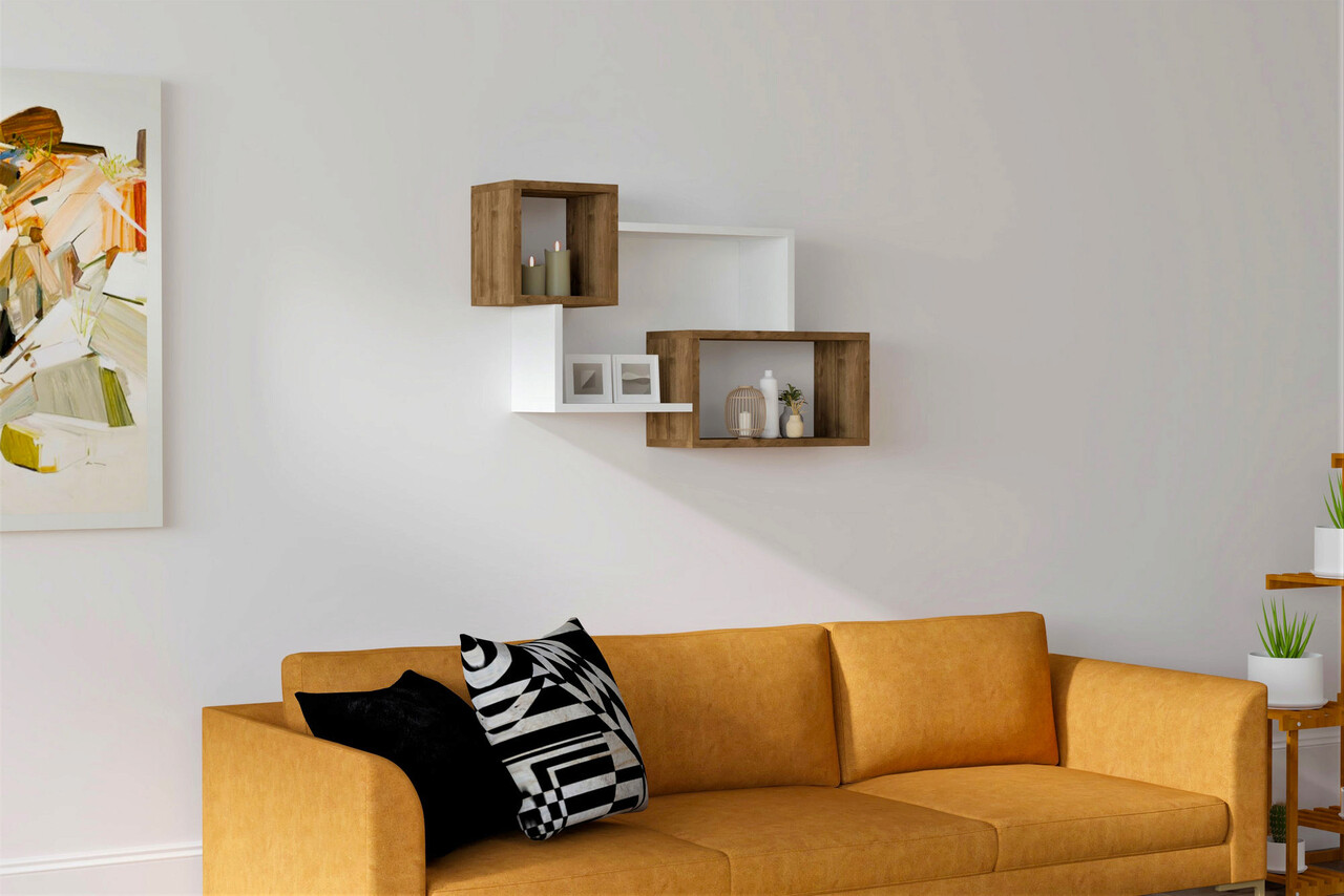 Raft de perete, Puqa Design, Afro, PAL, Alb/Maro