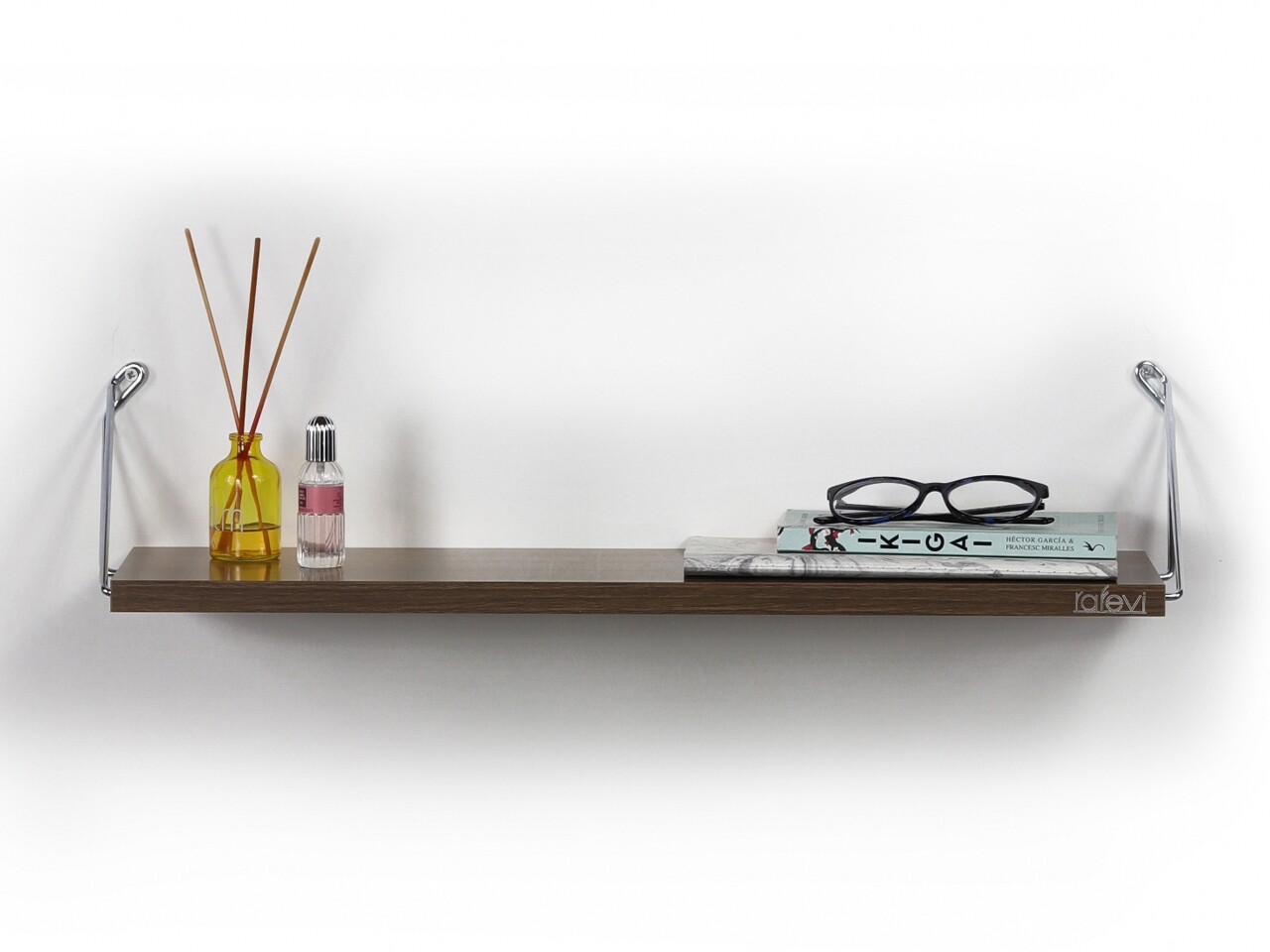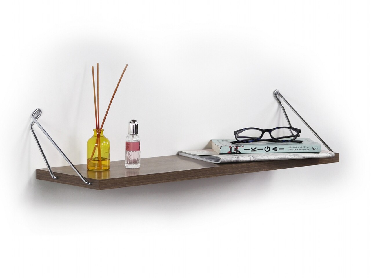 Raft de perete Rafevi Altai, 60 x 18 x 12.5 cm, PAL/metal, walnut/chrome