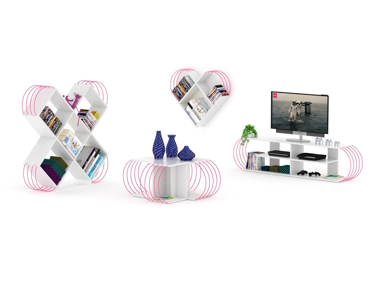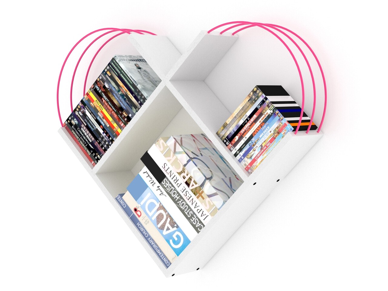 Raft de perete Rafevi Case, 89 x 18 x 74 cm, PAL/metal, alb/roz