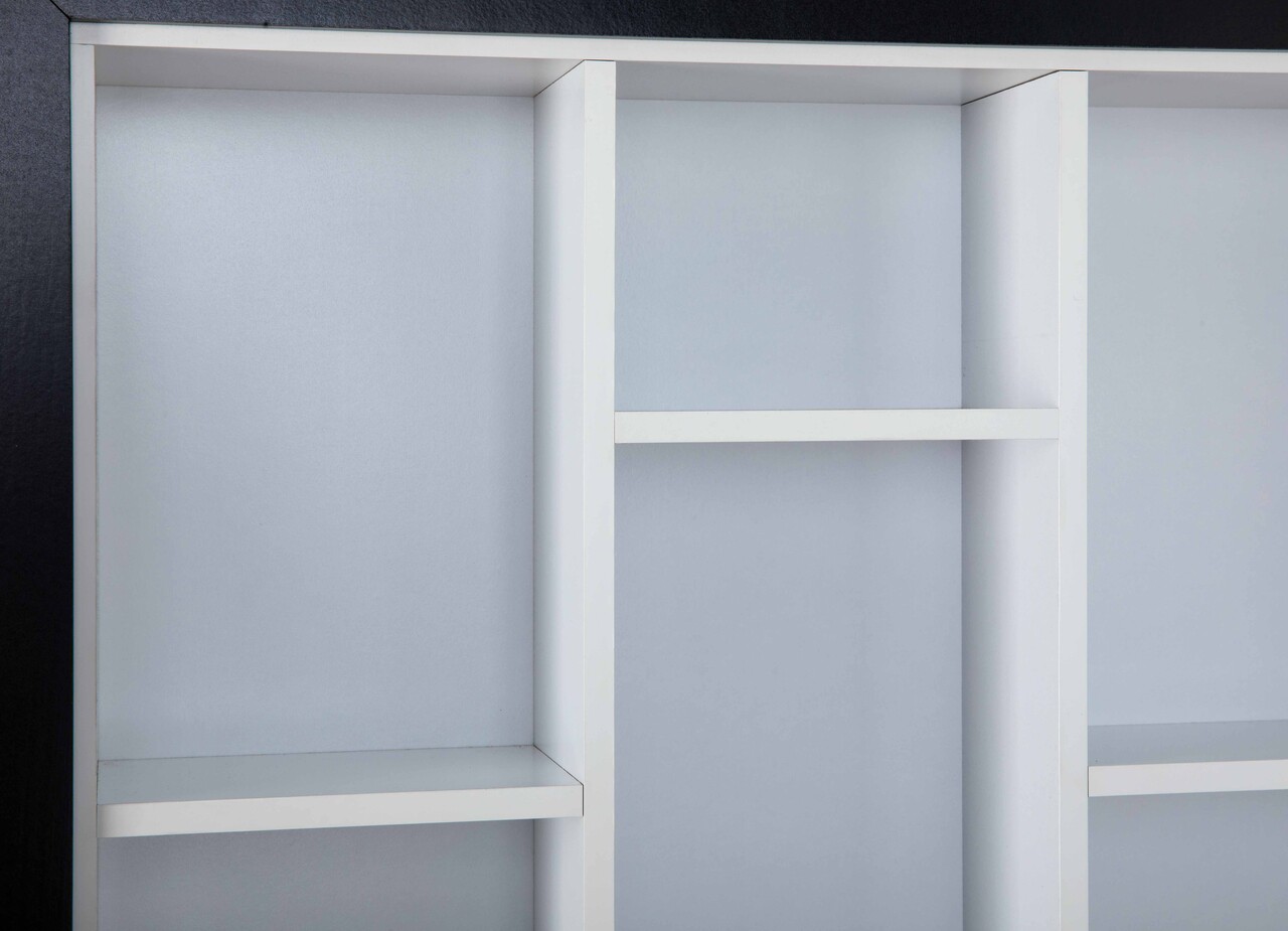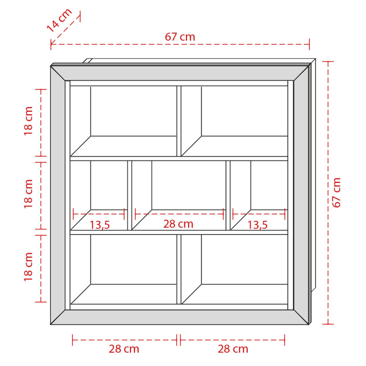 Acest raft de perete va va expune bibelourile si colectiile, decorand in acelasi timp peretele. Poate fi plasat in sufragerie, dormitor sau chiar la intrare pentru a crea o nota decorativa moderna. Schema de culori alb-negru completeaza cu usurinta orice stil de decor. Cele sapte nise de dimensiuni diferite confera raftului un efect fermecator de eclectic. Puteti aranja acolo obiecte precum lumanari, fotografii, vaze sau CD-uri dupa cum doriti.
