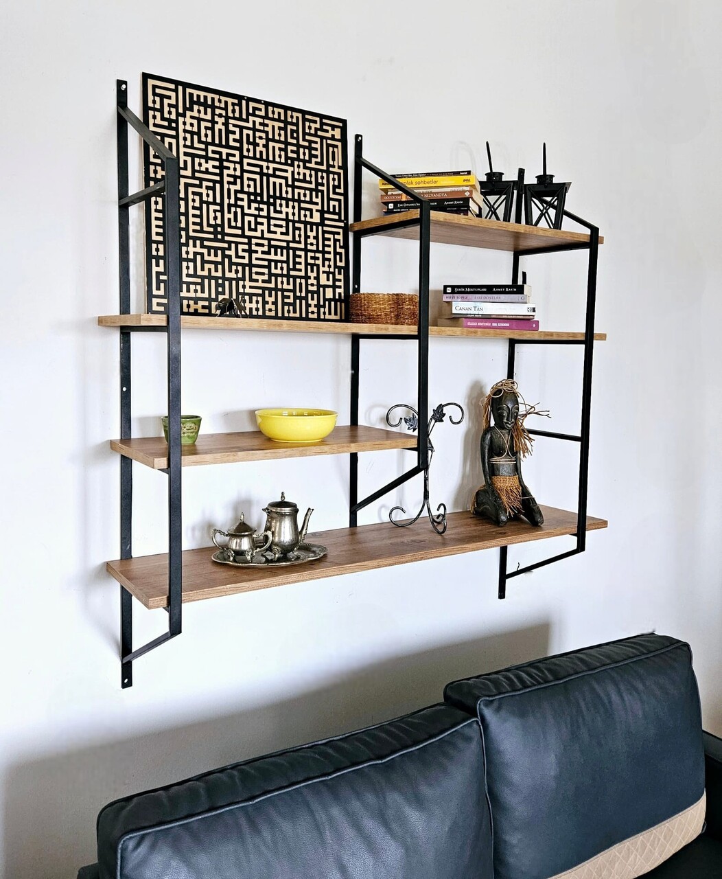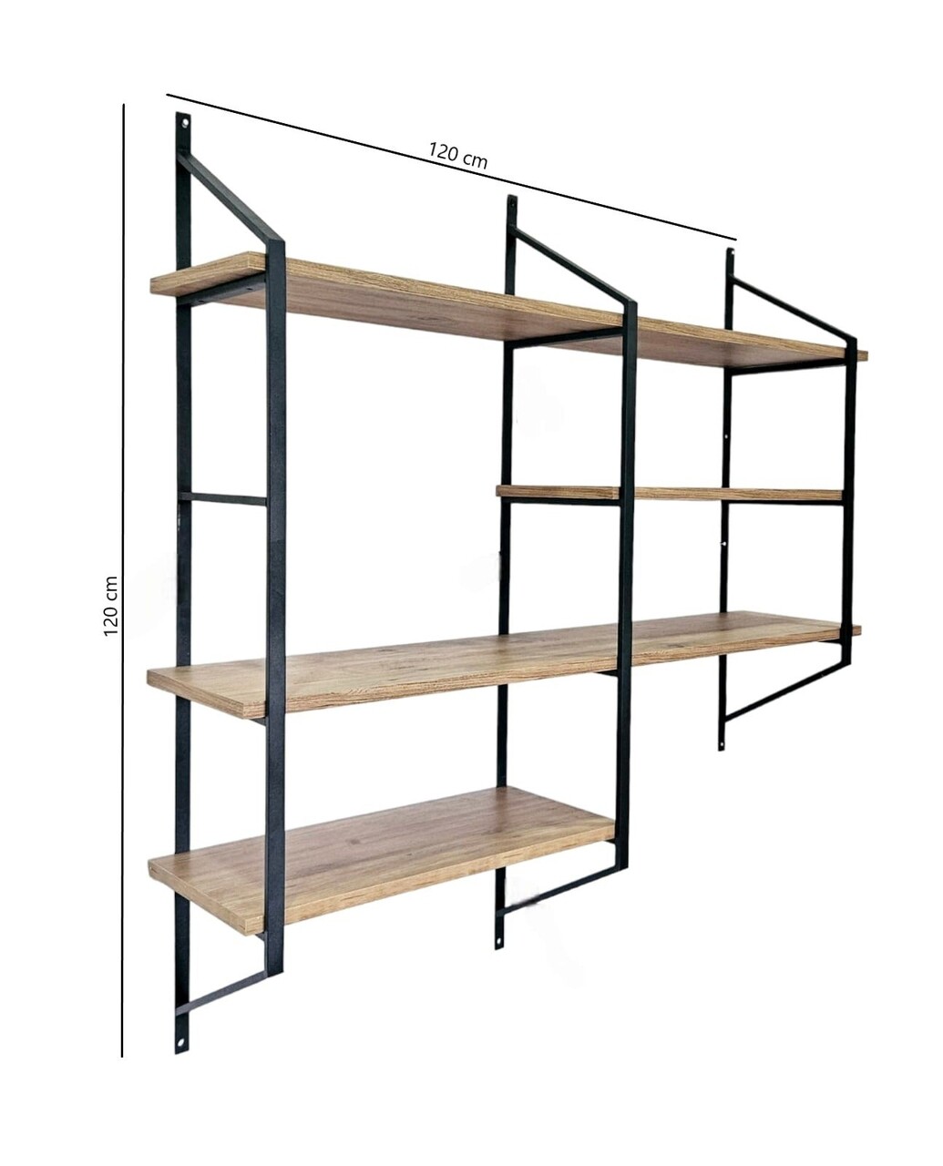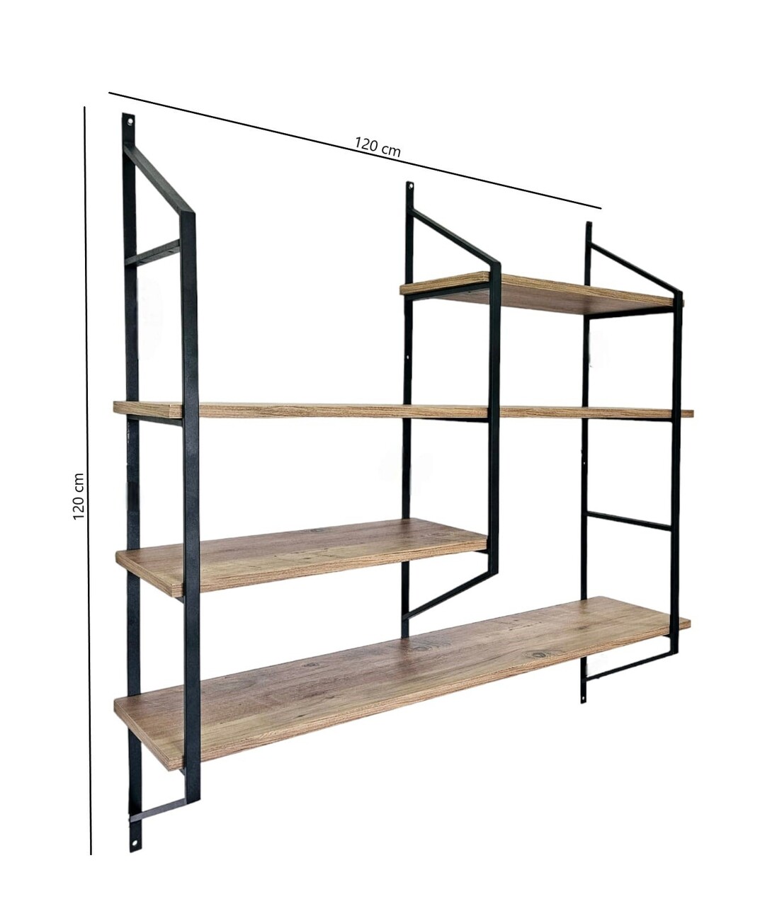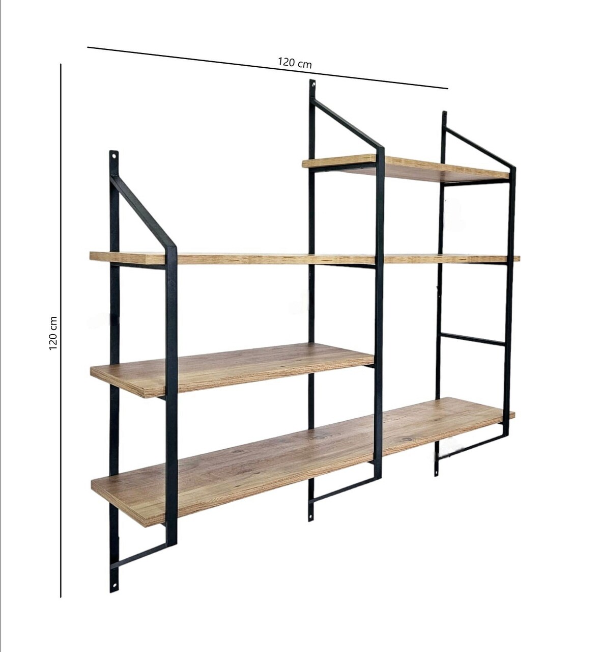 Raft de perete, Valovi, Raffy6, 120x120x28 cm, PAL, Negru / Pin Atlantic