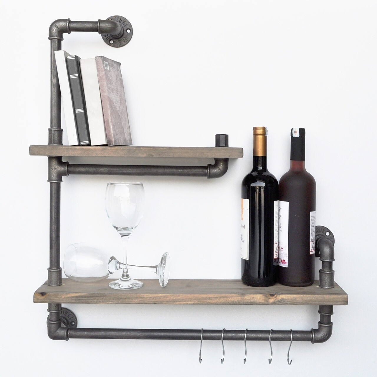 Raft depozitare bucatarie, Evila Originals, BoruRaf019, 60 x 58 x 14 cm, lemn de molid/metal, nuc/negru
