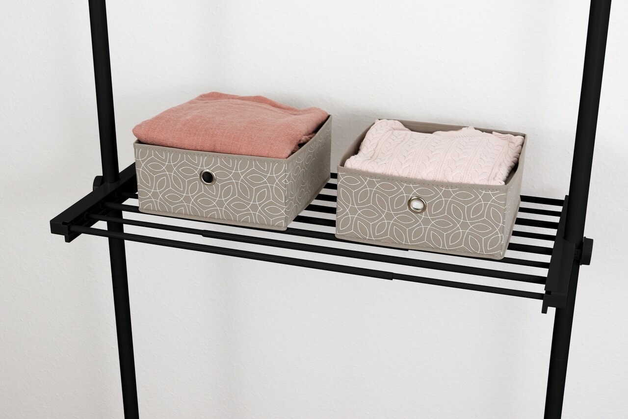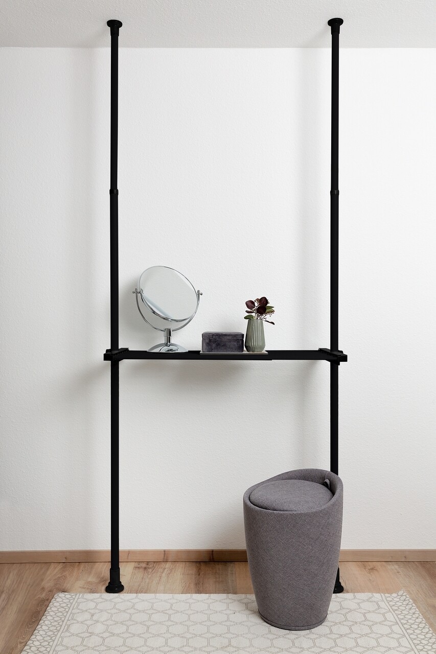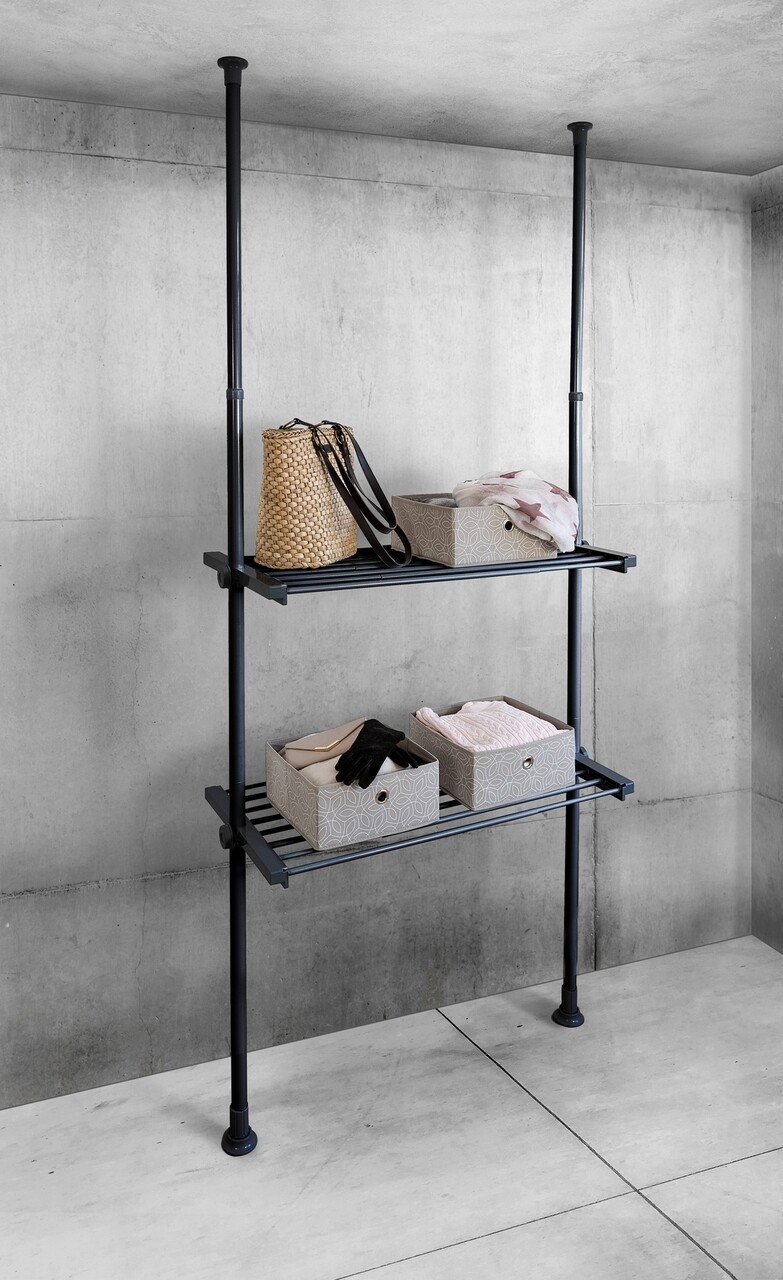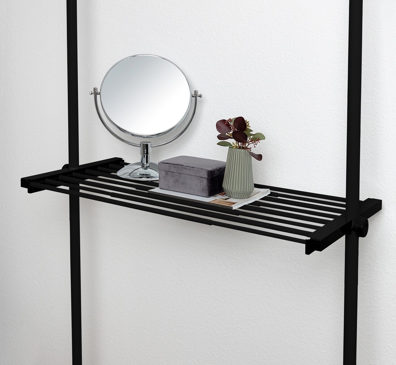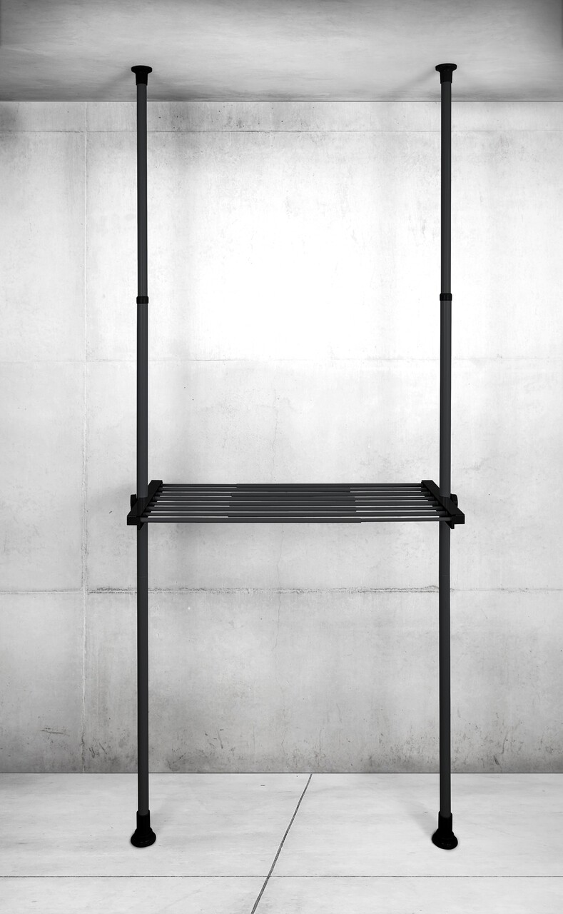 Raftul de înaltă calitate oferă spațiu amplu pentru articole de îmbrăcăminte, accesorii, prosoape, coșuri și decorațiuni, păstrându-le mereu la îndemână. Datorită funcției sale de reglare a înălțimii, întregul sistem telescopic Herkules poate fi adaptat pentru a se potrivi în cele mai diverse spații.