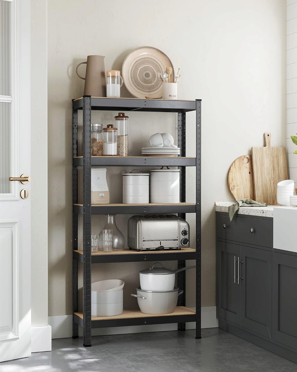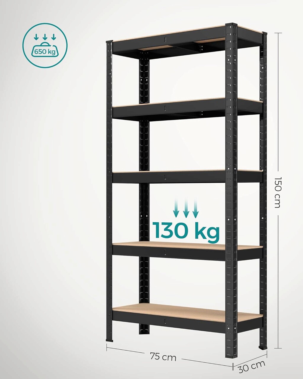 Raft modular pentru depozitare Songmics, 75 x 30 x 150 cm, MDF/fier, negru/maro deschis