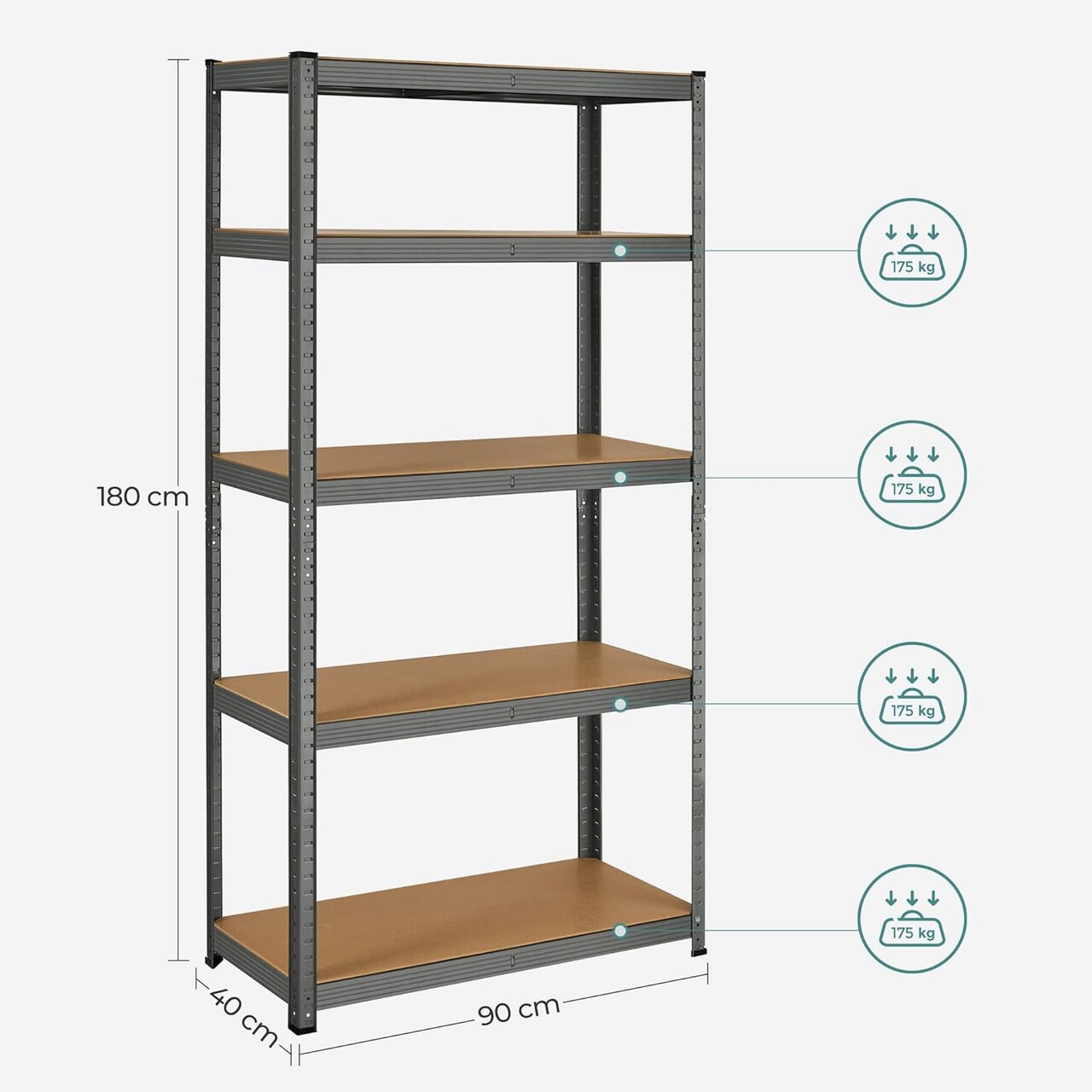 Dimensiuni mari, capacitate mare Cu dimensiuni de 40 x 90 x 180 cm si o capacitate de incarcare totala de 875 kg, aceasta unitate de rafturi poate fi utilizata intr-un garaj, depozit, pivnita sau camera de depozitare pentru a va organiza toate uneltele si echipamentele.