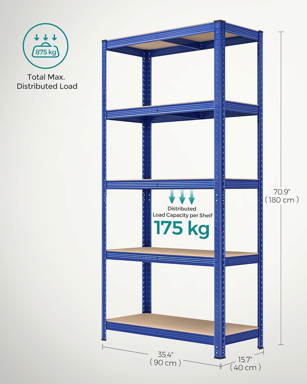 Raft modular pentru depozitare Songmics, 90x40x180 cm, 875 kg, MDF/otel, albastru