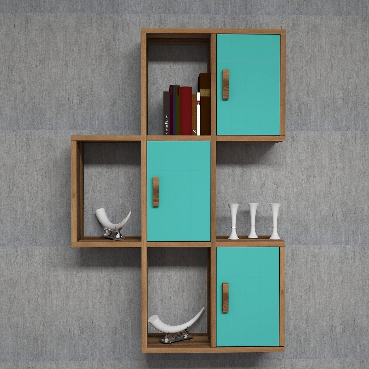 Raft pentru perete Flora, Hommy Craft, 50x20x112.6 cm, turcoaz/maro