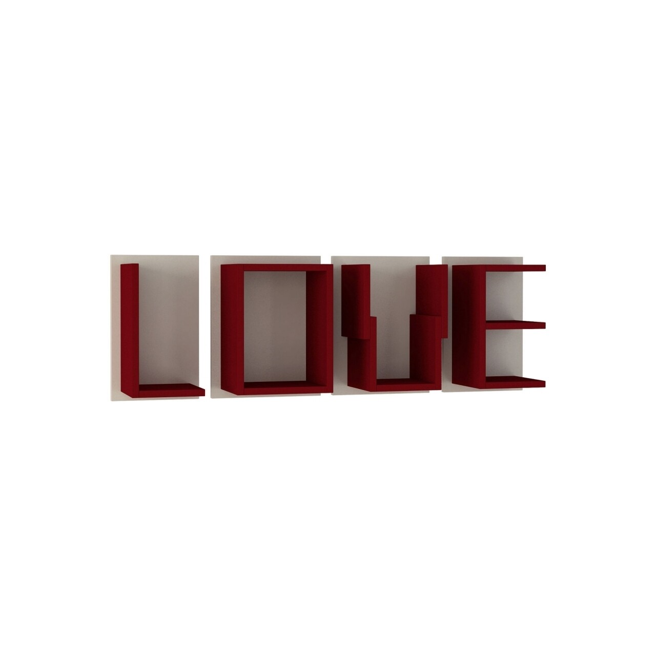 Raft pentru perete, Homitis, Love - Claret Red, White, 19.5x121x39 cm