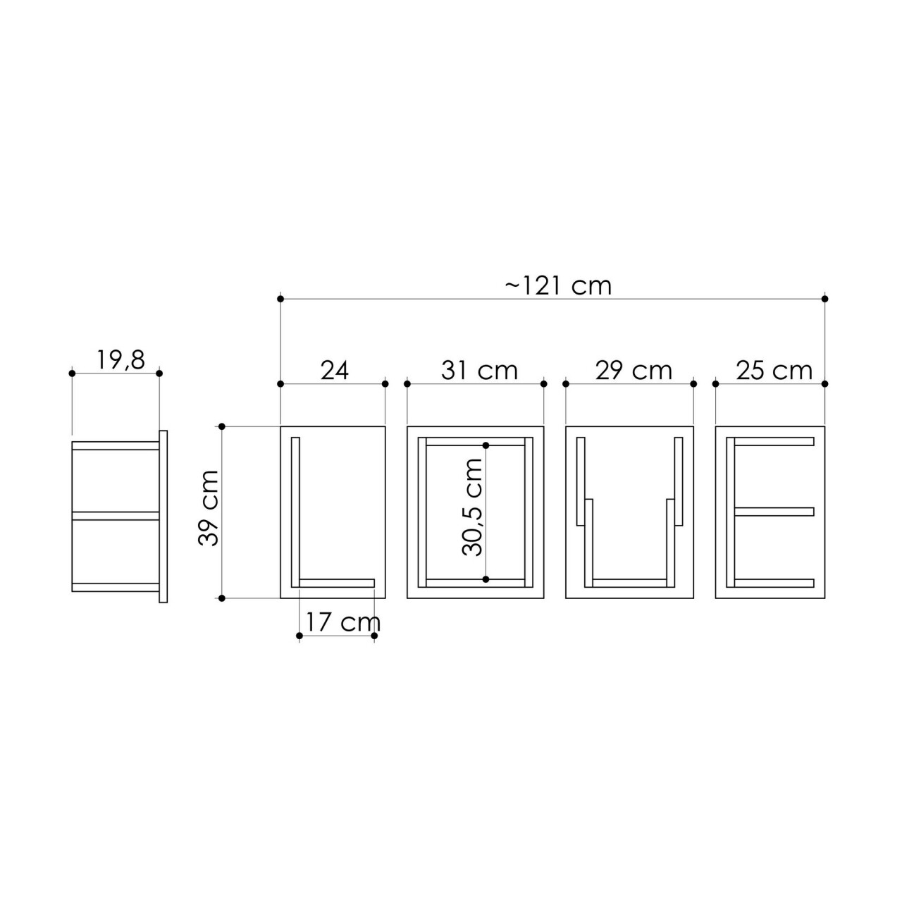 Raft pentru perete, Homitis, Love - White, Claret Red, 19.5x121x39 cm