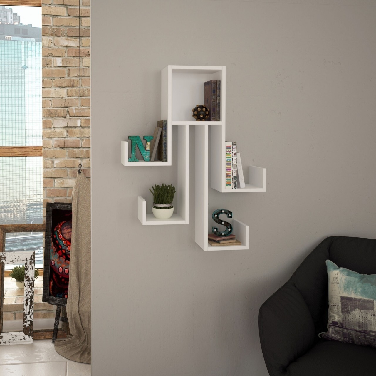 Raft pentru perete, Homitis, Octopus - White, 20x73x93.5 cm