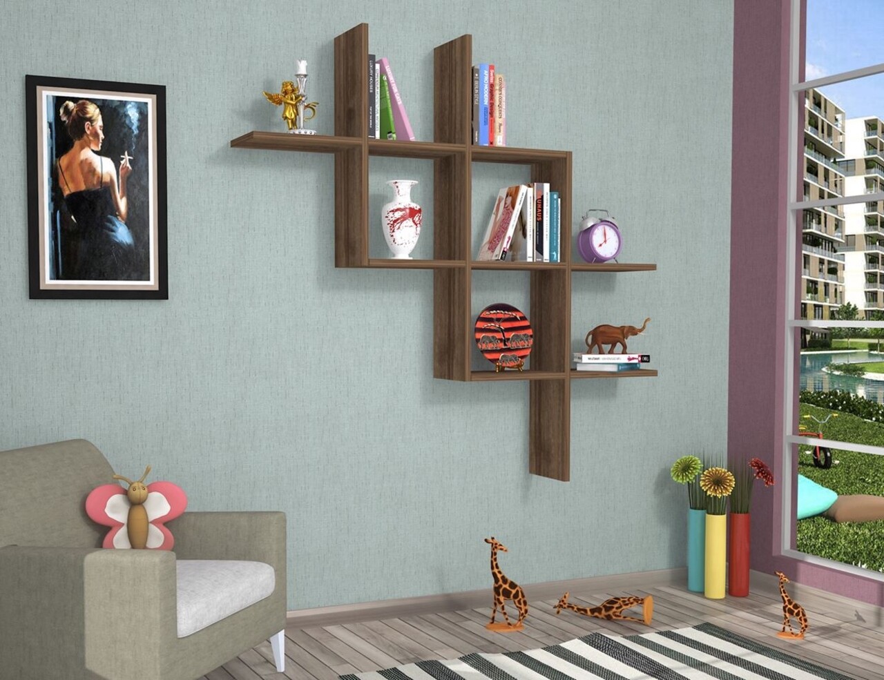 Raft pentru perete Raffline, 125x22x125 cm, nuc