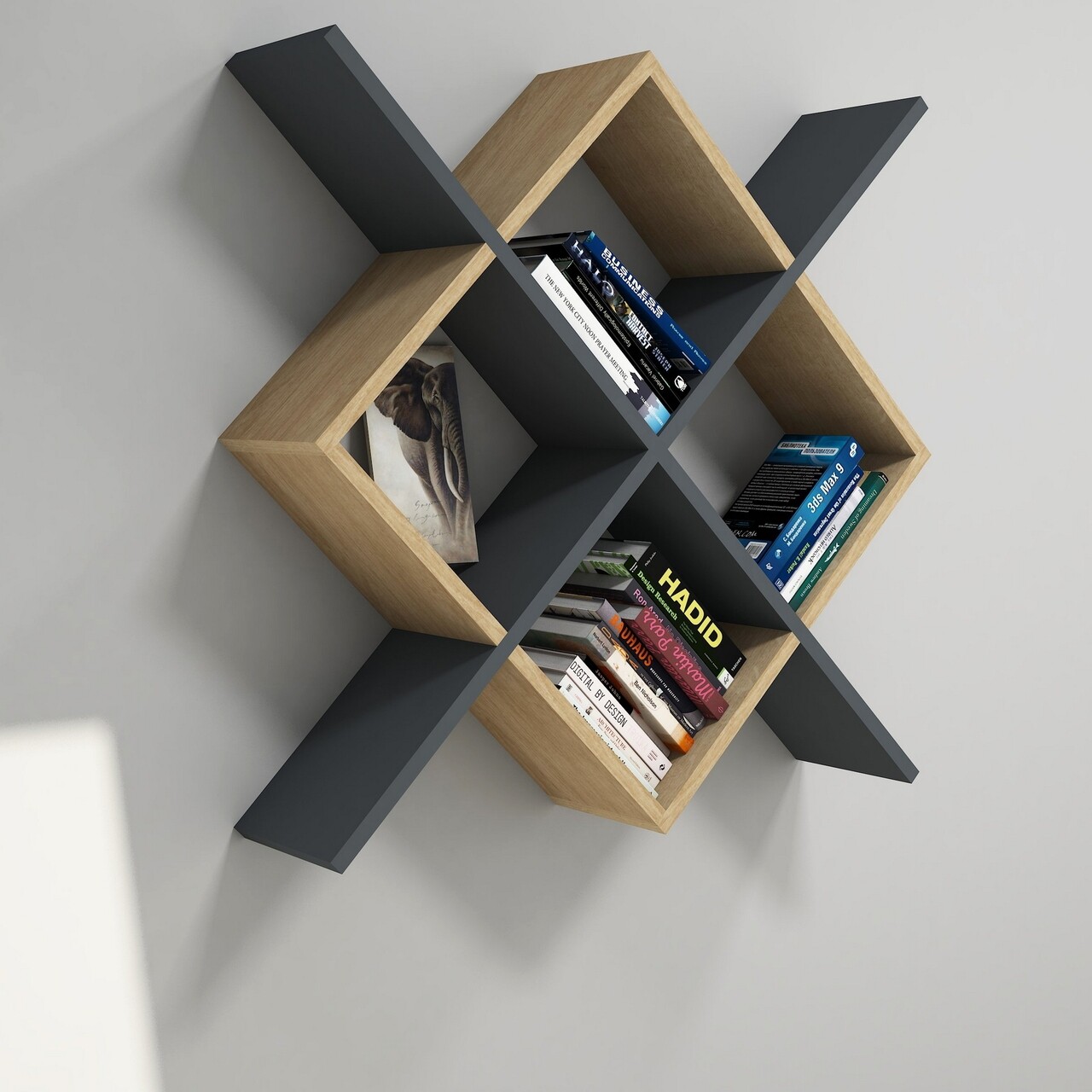 Raft pentru perete Semo, Puqa Design, 79x19,6x79 cm, safir/antracit