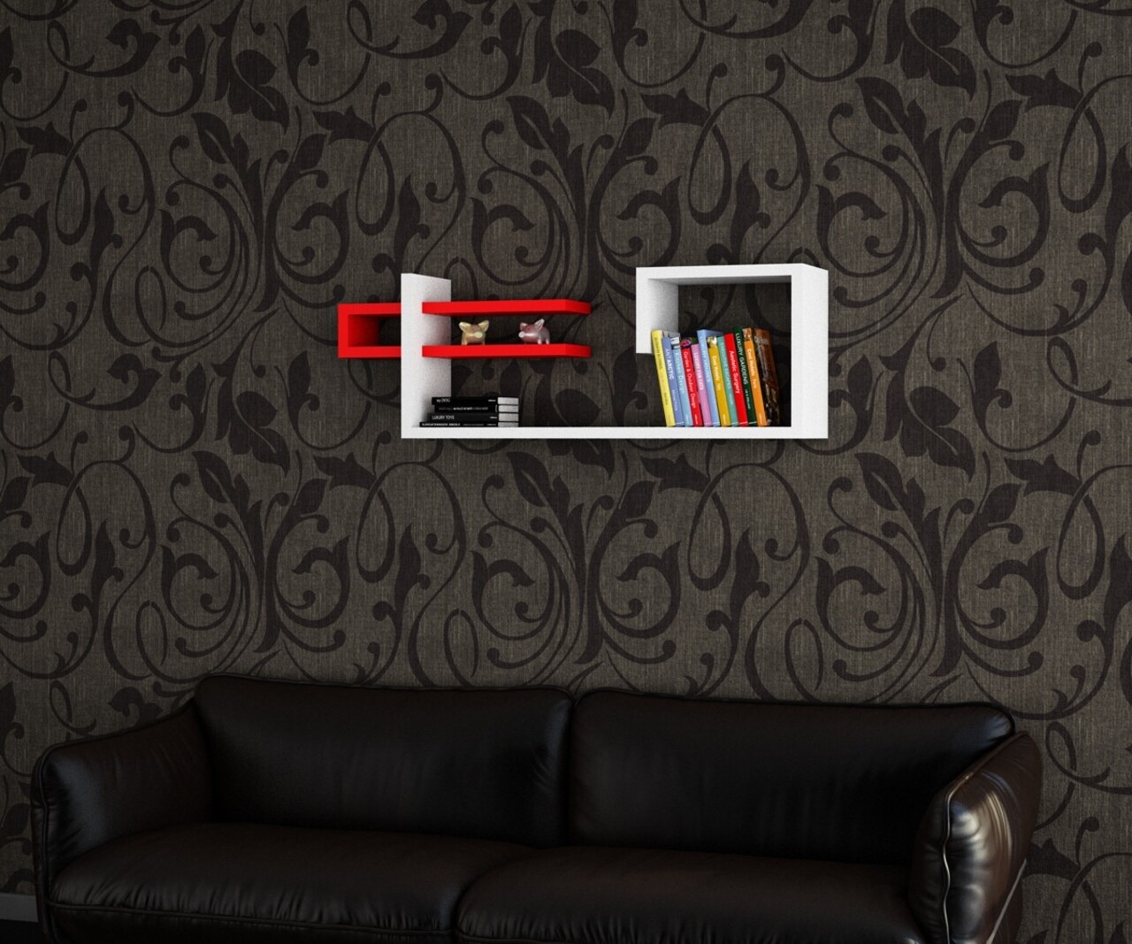 Raft pentru perete Stor, Woody Fashion, 90x19.5x30 cm, rosu/alb