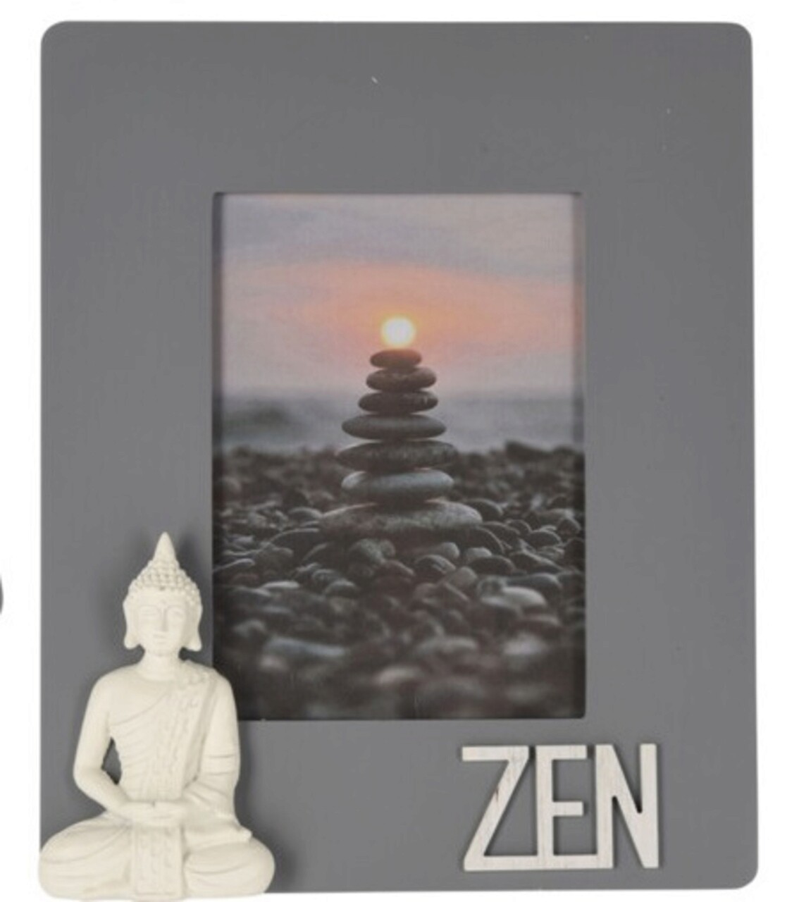 Rama foto Buddha, 28x3.5x23 cm, lemn, gri/alb