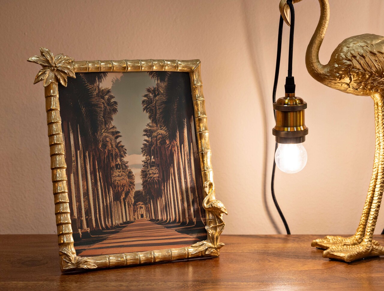 Rama foto Flamingo, Mauro Ferretti, 20x25 cm, polirasina/sticla, auriu