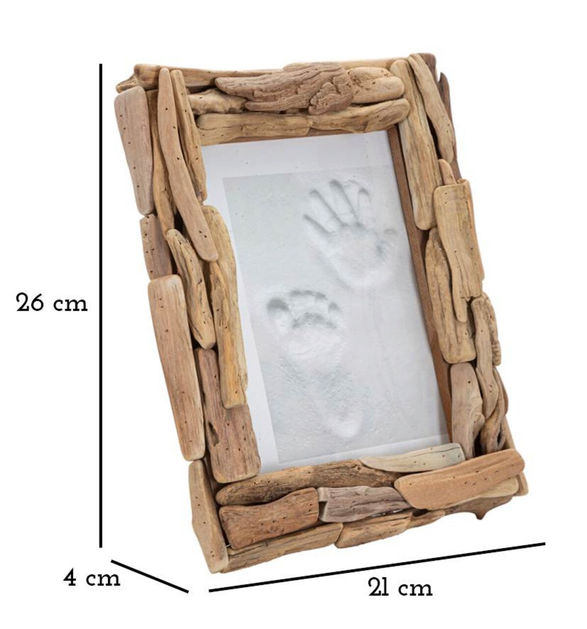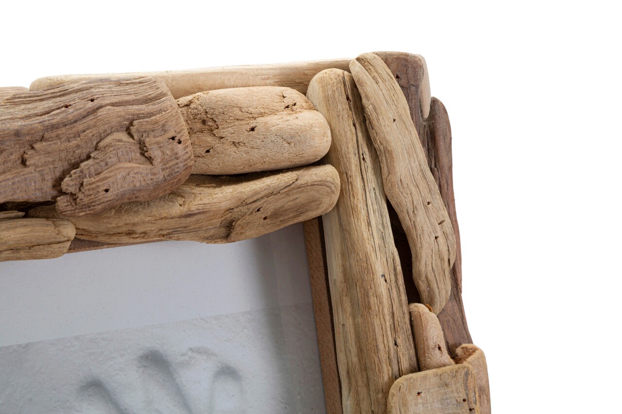Rama foto este realizata dintr-un set de dibluri de lemn de diferite forme si dimensiuni. Poate fi pozitionat atat pe orizontala, cat si pe verticala. Dimensiuni fotografie 15x20 cm.