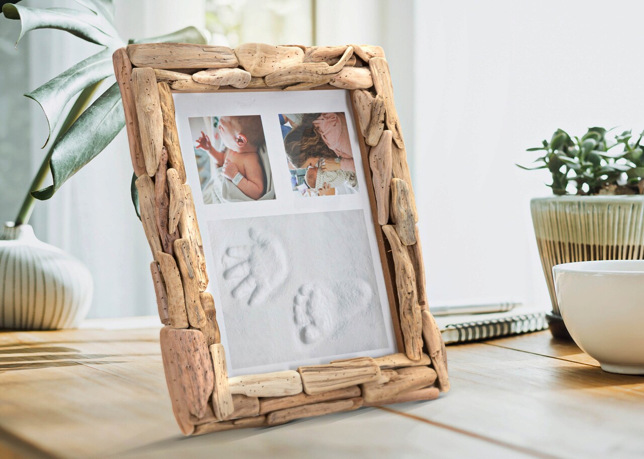 Rama foto este realizata dintr-un set de dibluri de lemn de diferite forme si dimensiuni. Acesta poate fi pozitionat atat pe orizontala, cat si pe verticala. Dimensiuni fotografie 20x25 cm.