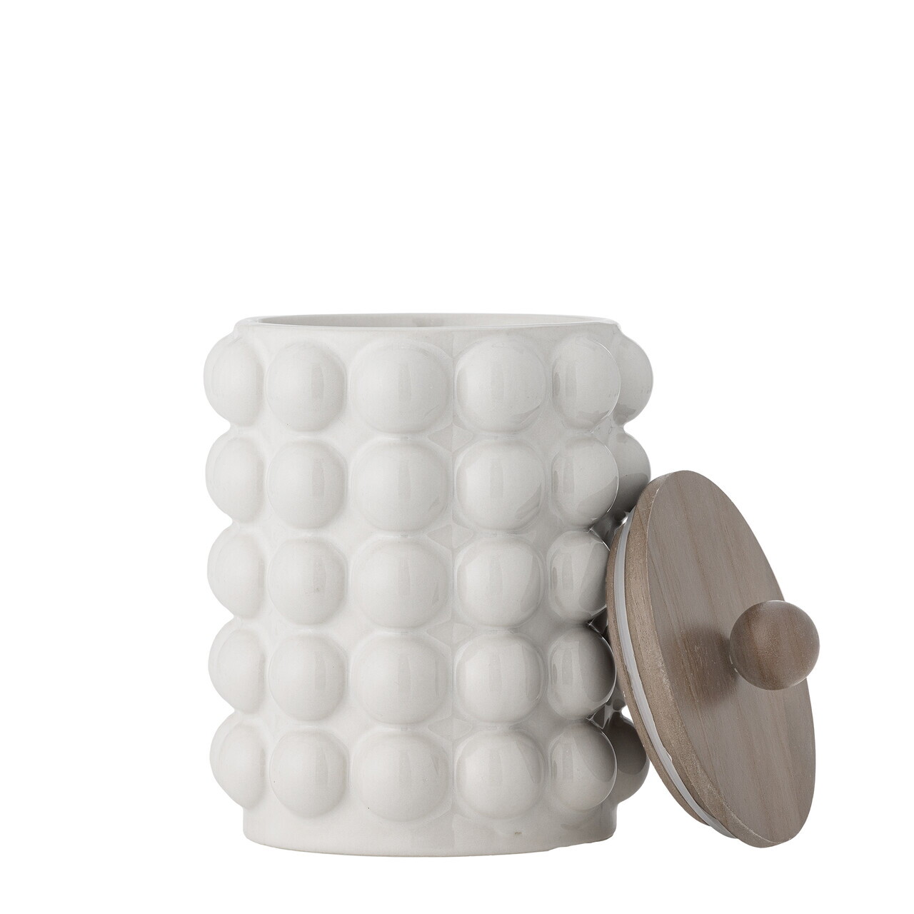 Recipient cu capac, Bloomingville, Madge, 15x21 cm, 1.3 L, ceramica/lemn de salcam, alb