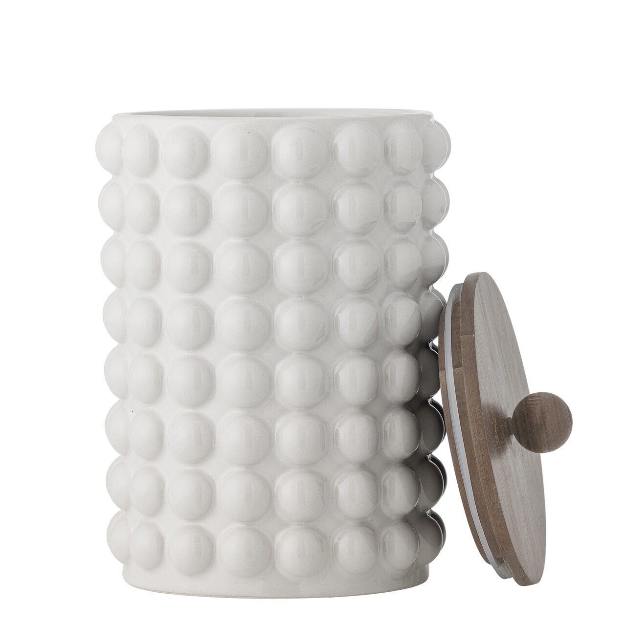Recipient cu capac, Bloomingville, Madge, 17x27 cm, 2.55 L, ceramica/lemn de salcam, alb