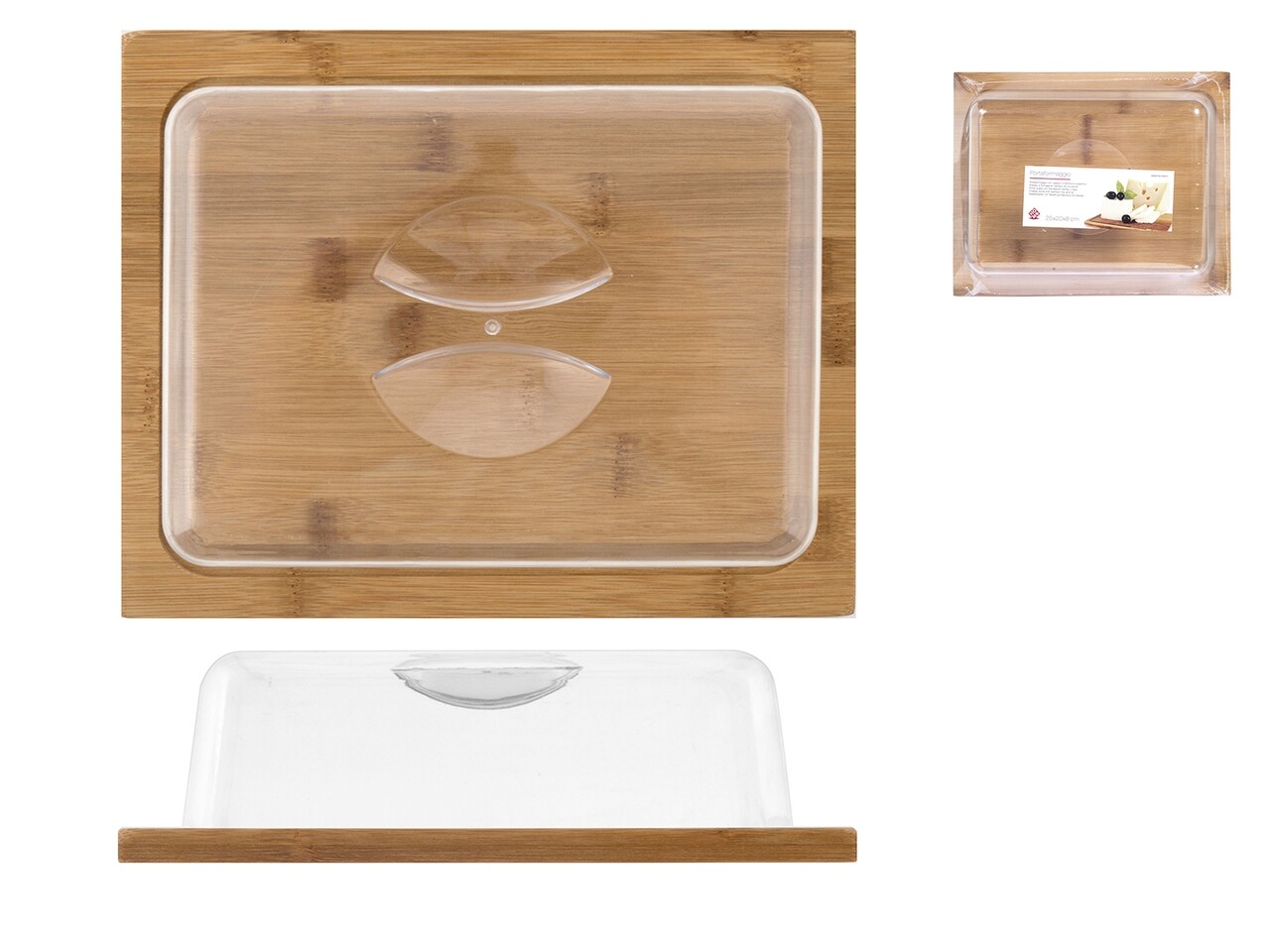 Recipient cu capac pentru branzeturi Dome, HO-ME, 25 x 20 x 8 cm, bambus/plastic