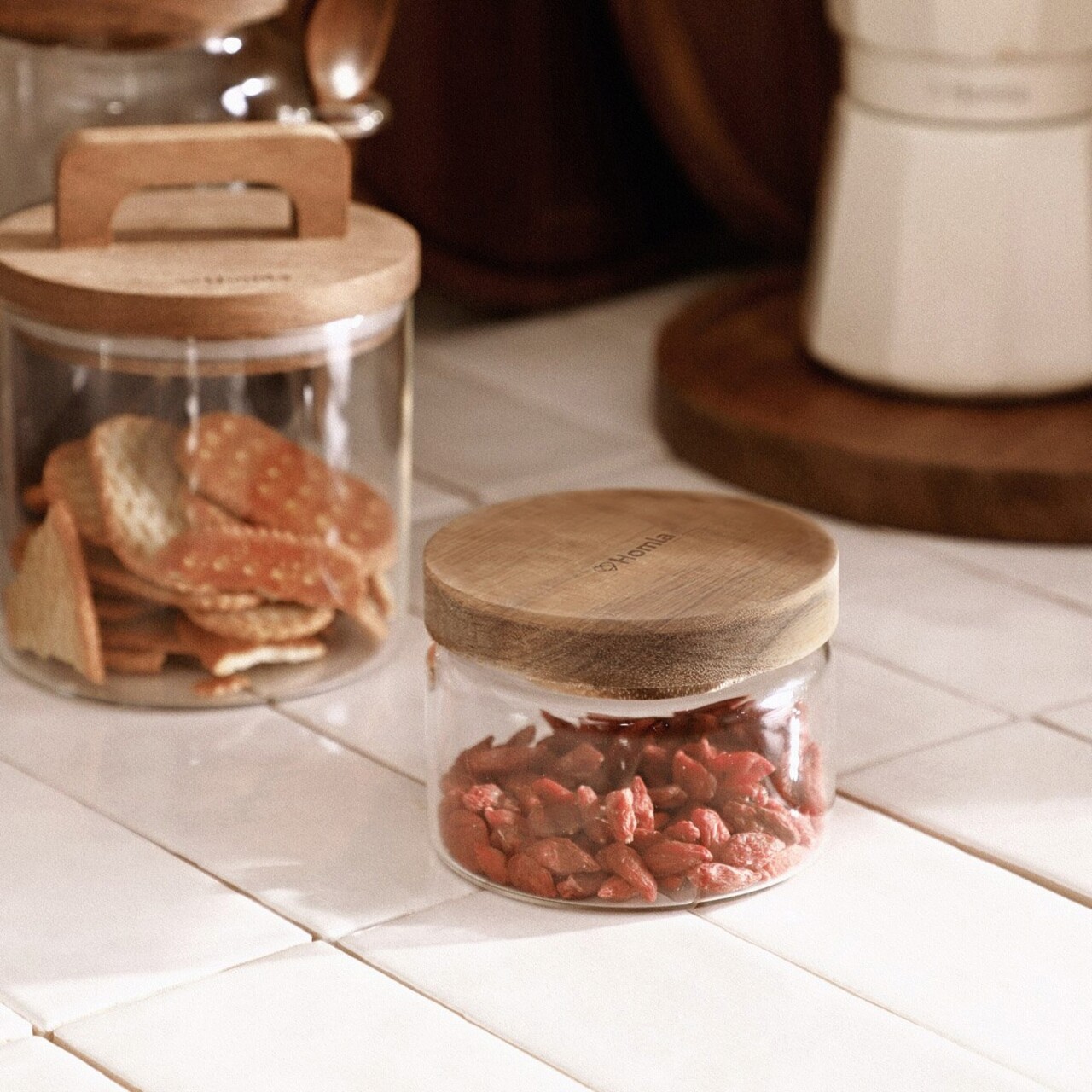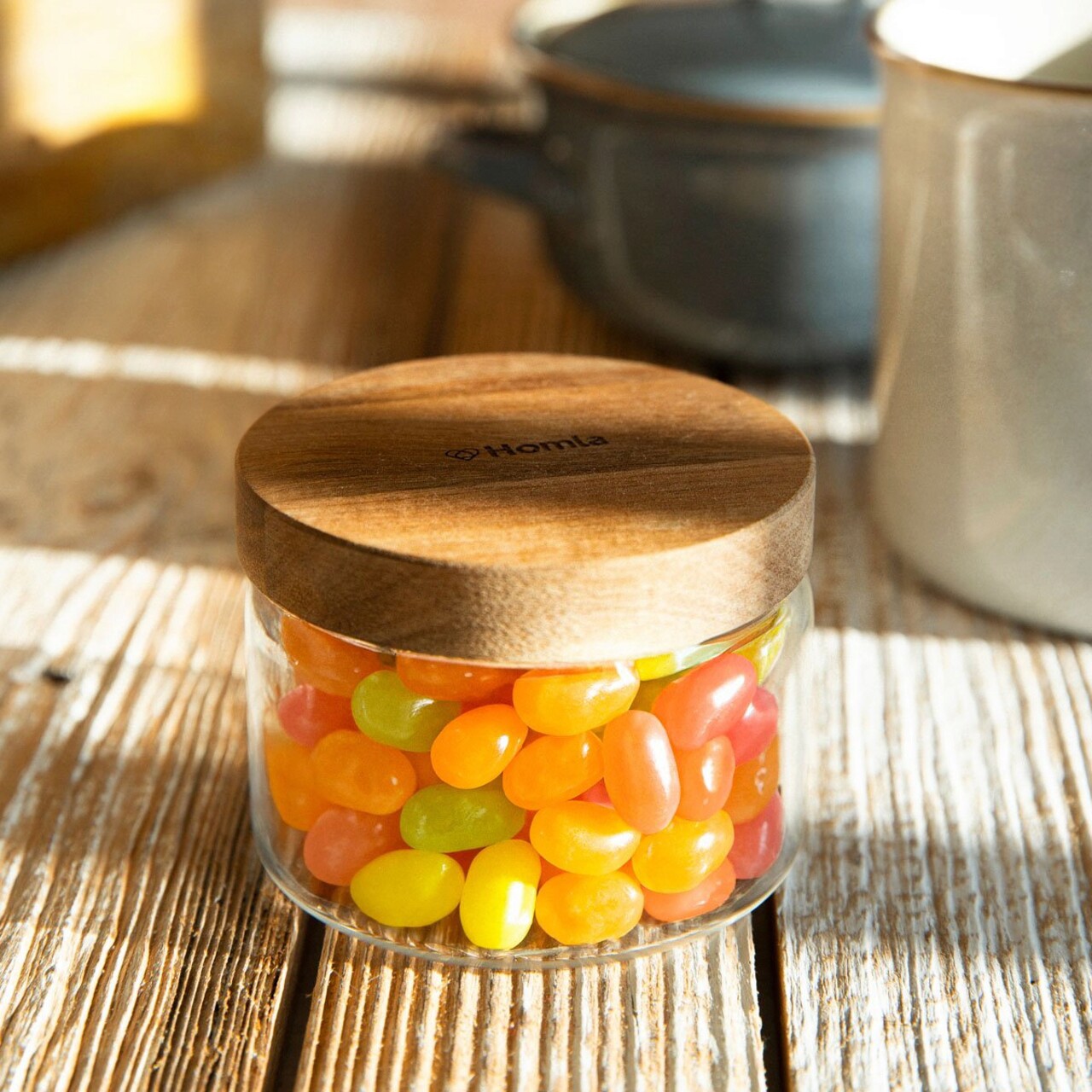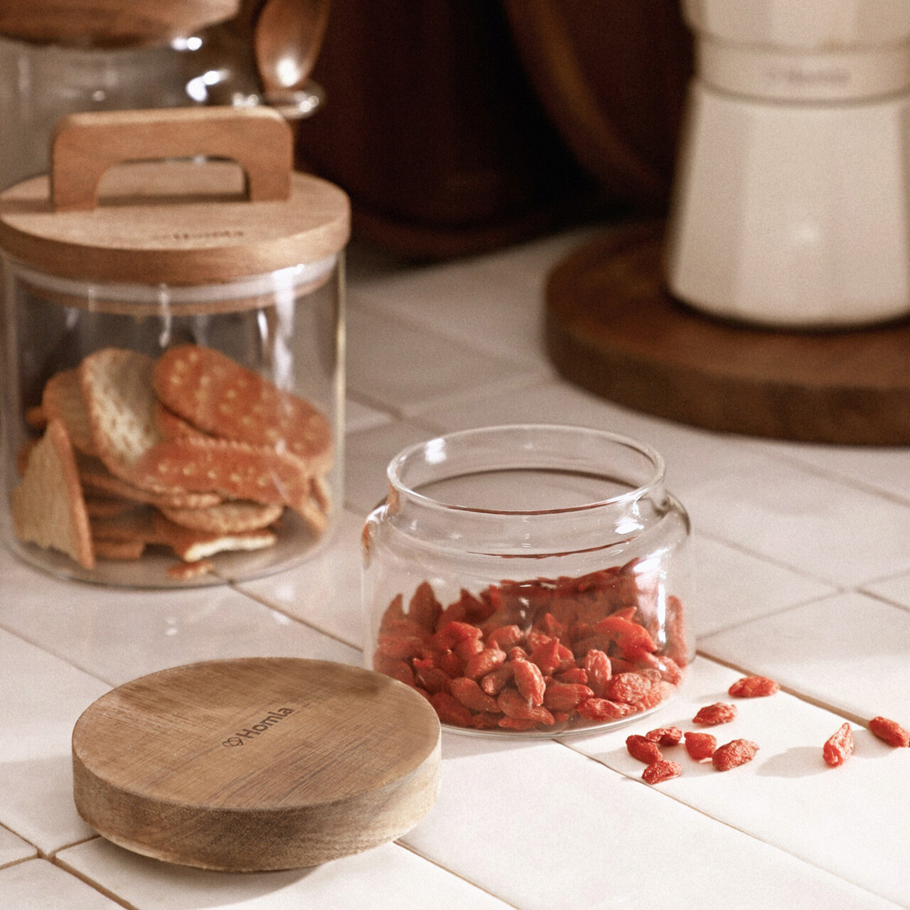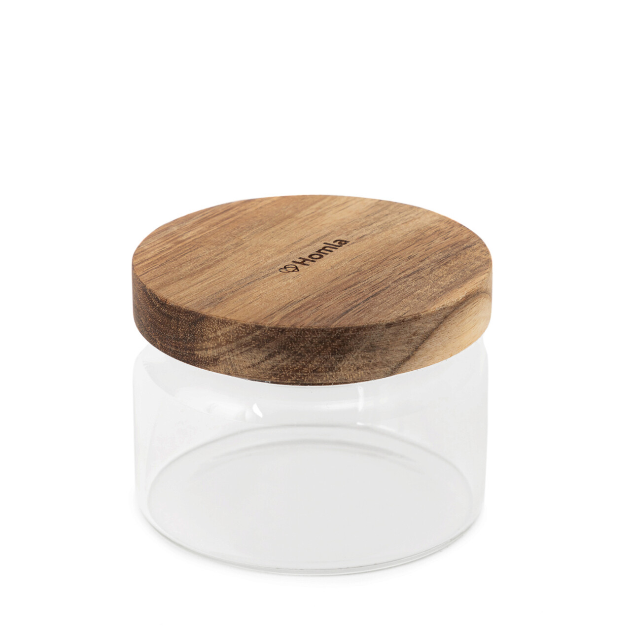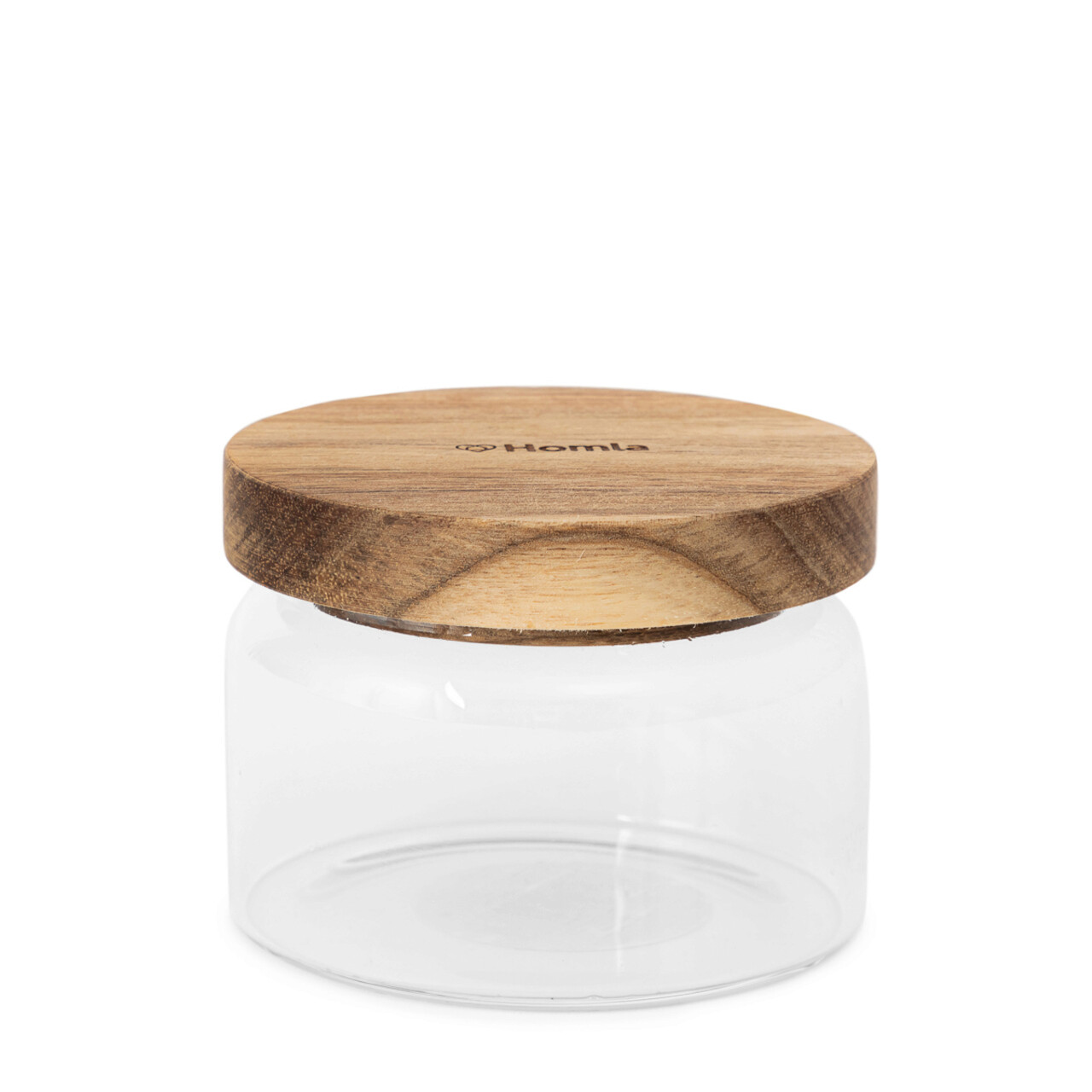 Recipient cu capac pentru depozitare Carlos, Homla, 250 ml, sticla/lemn, transparent/natur