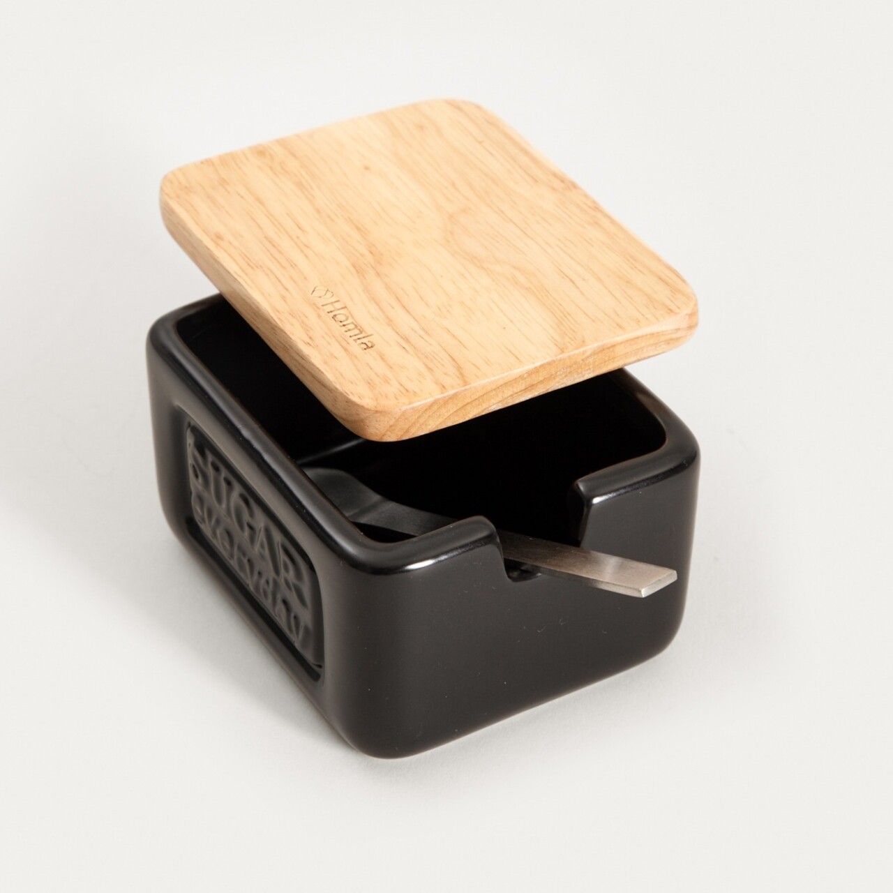 Recipient cu capac pentru zahar Sylan, Homla, 10x8x7 cm, ceramica/lemn, negru/natur