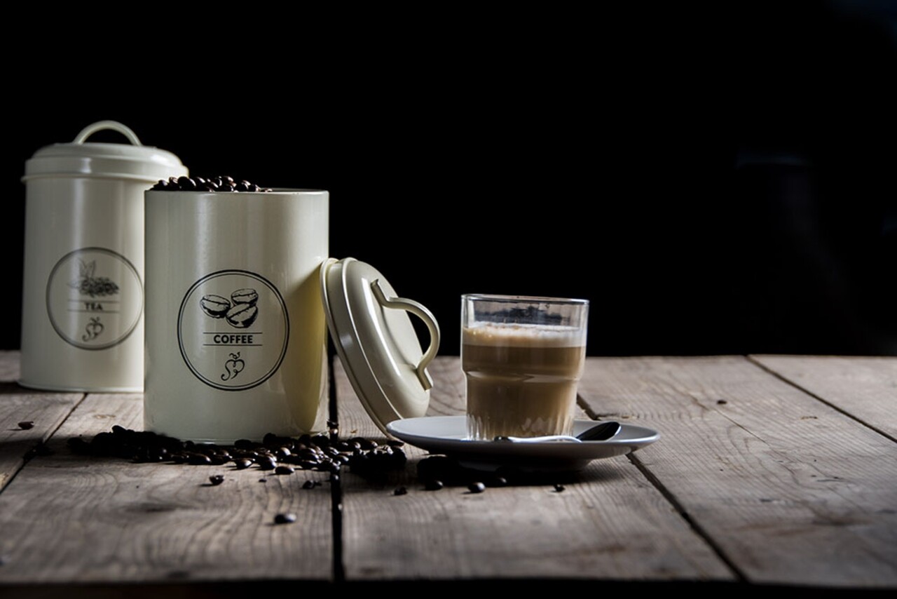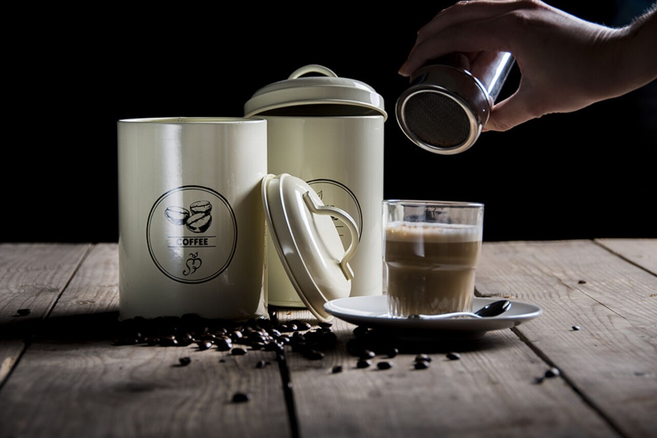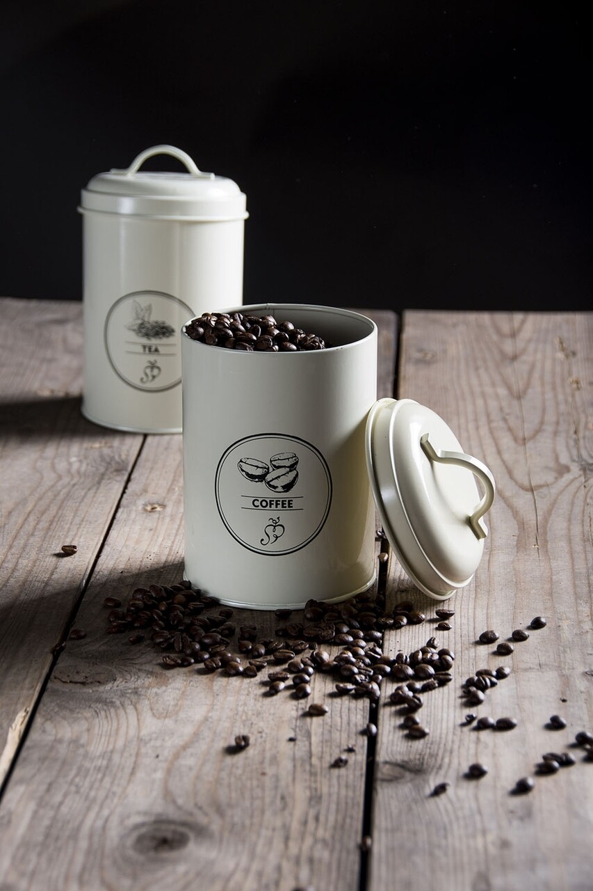 Recipient depozitare cafea, Esschert, 12 x 18.8 cm, otel galvanizat, crem/negru