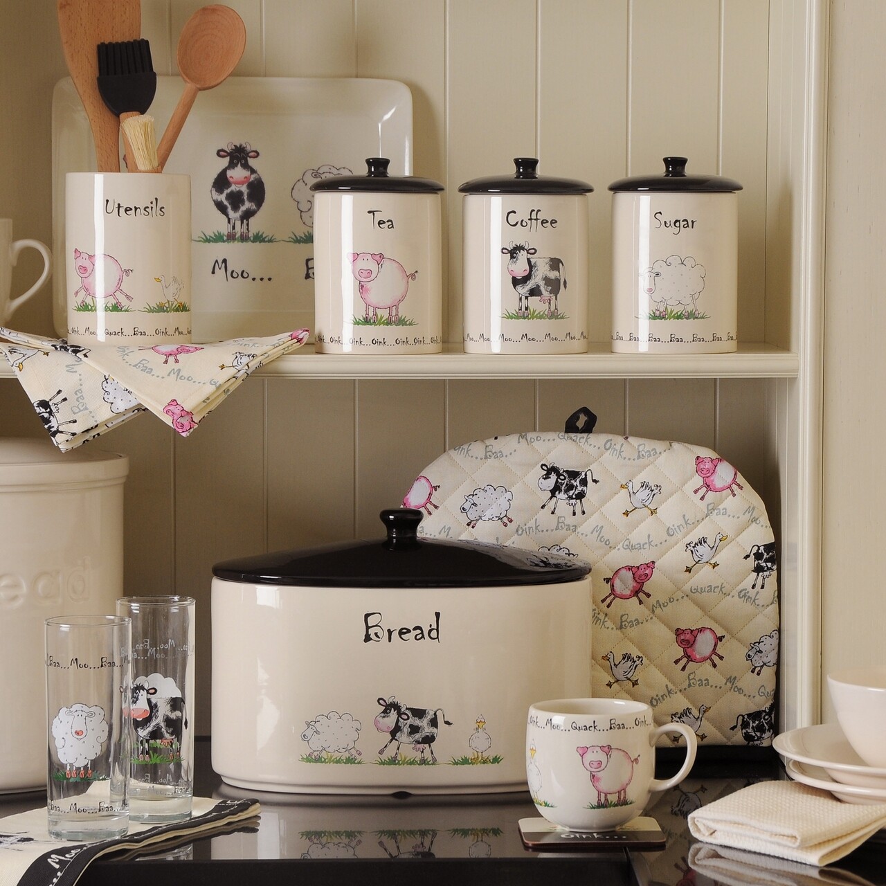 Recipient depozitare cafea Home Farm, 10.5 x 10.5 x 15.5 cm, ceramica, multicolor