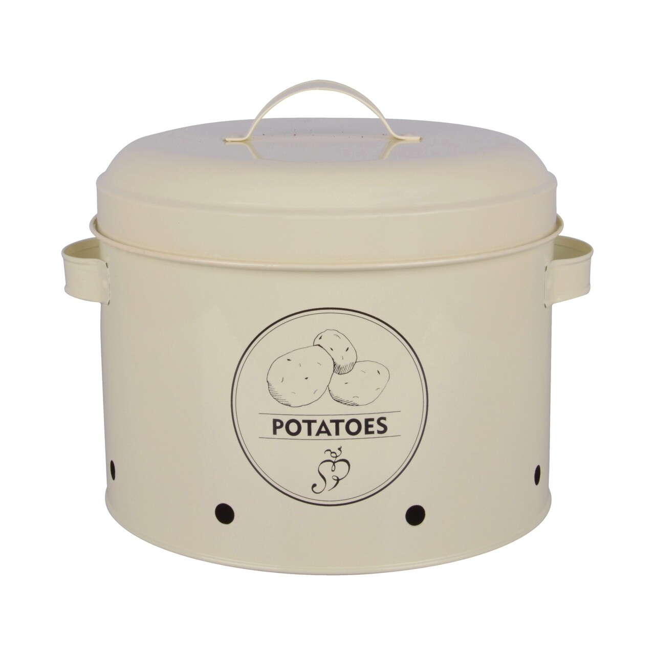 Recipient depozitare cartofi, Esschert, 23.3 x 27.5 x 21 cm, otel carbon, crem/negru