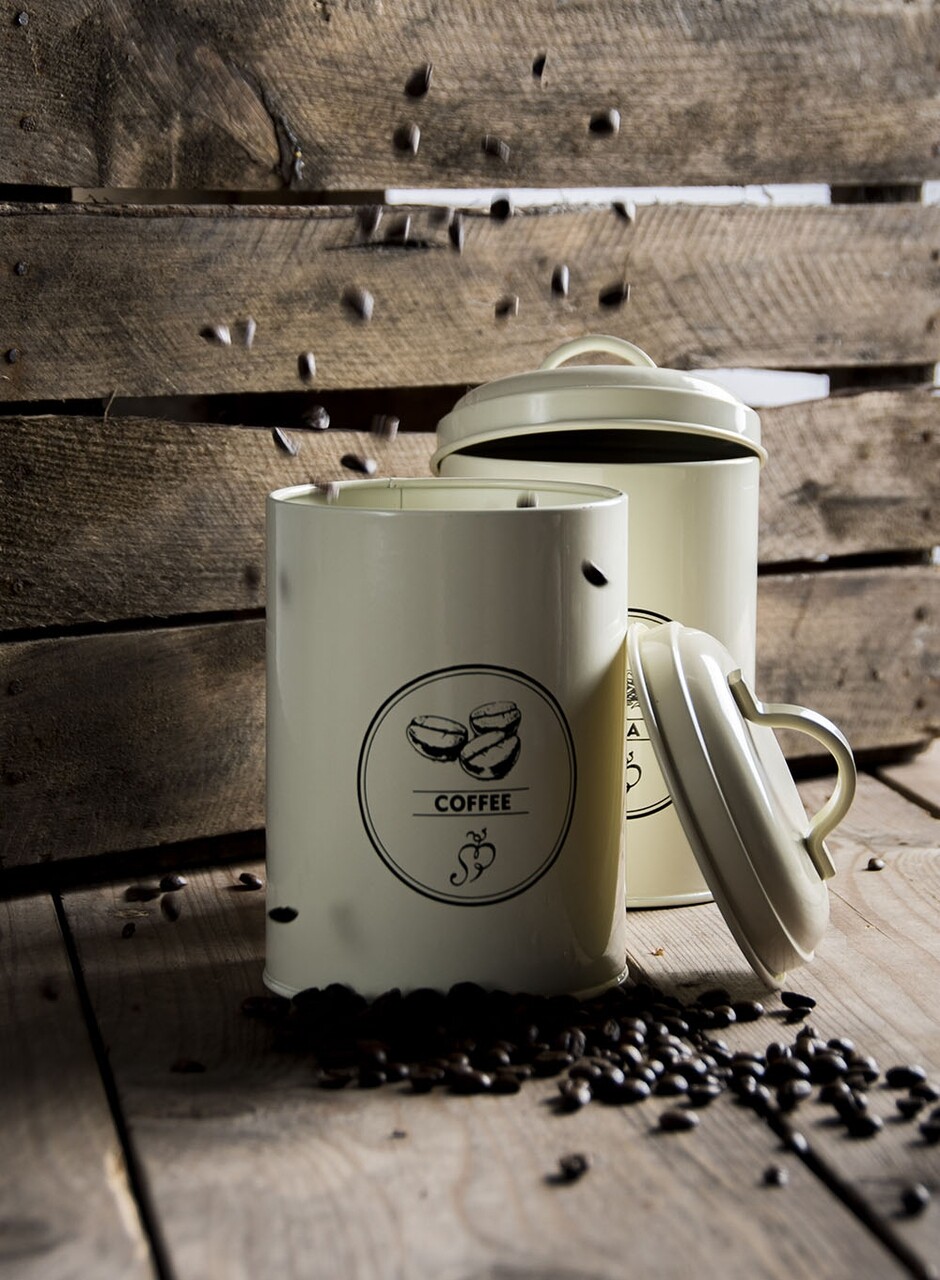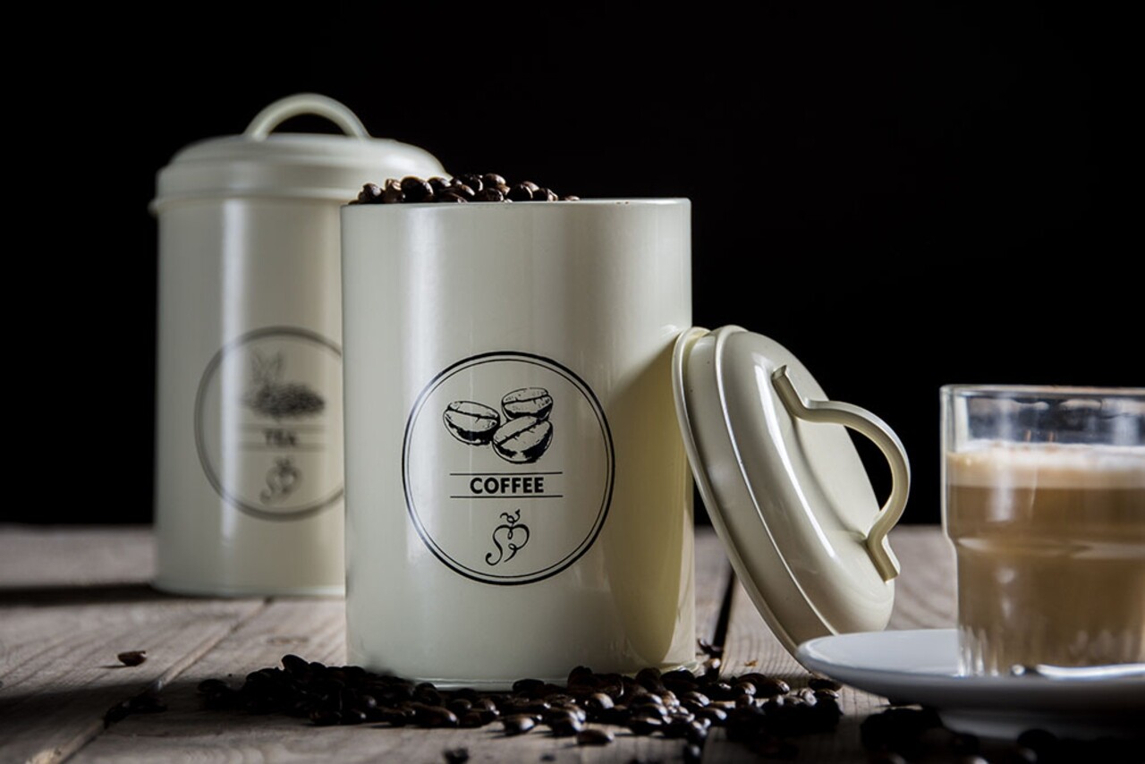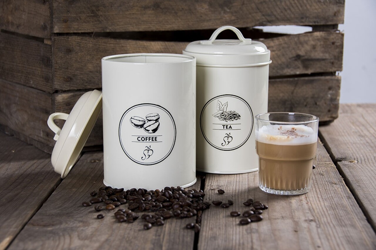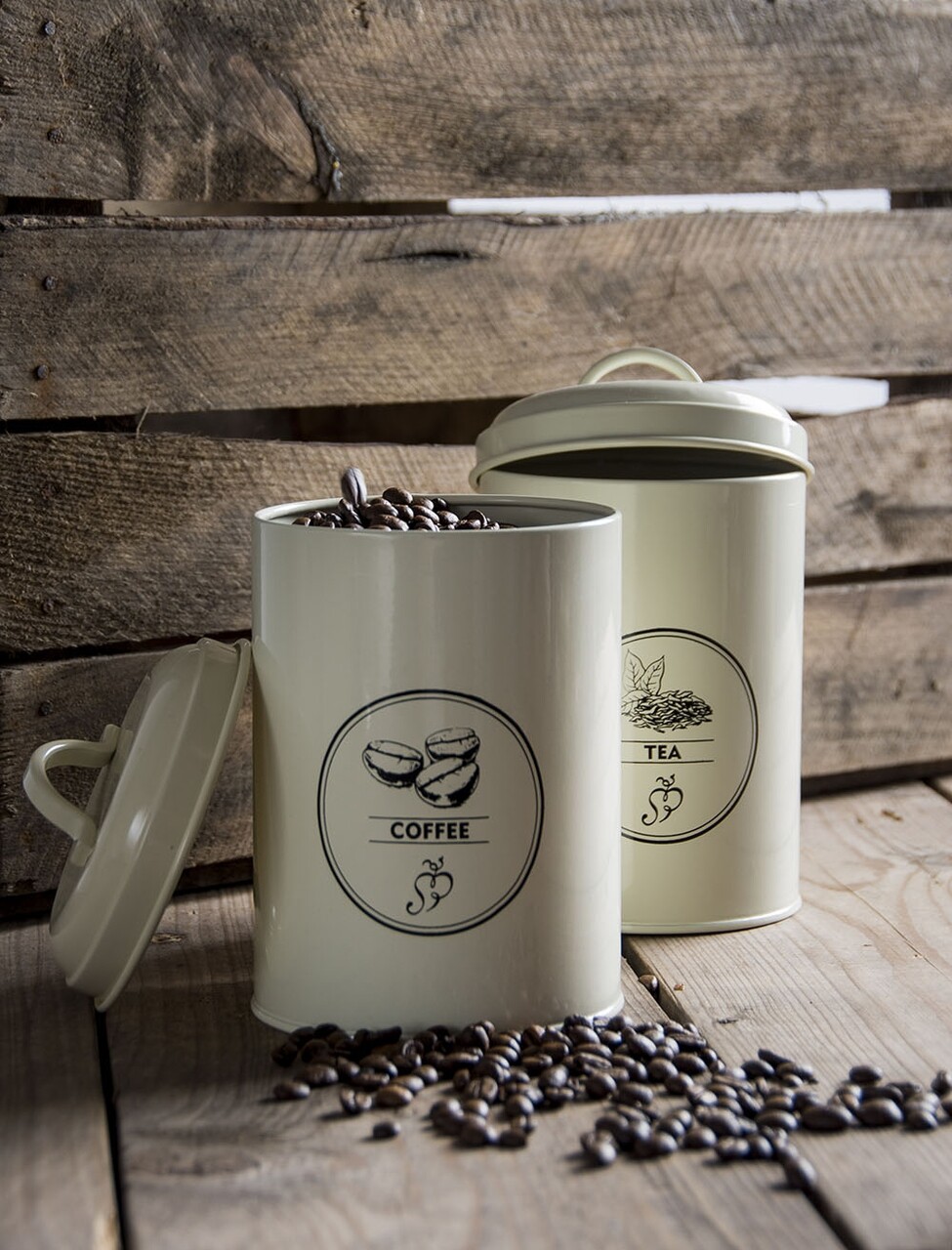 Recipient depozitare ceai, Esschert, 12 x 18.8 cm, otel galvanizat, crem/negru