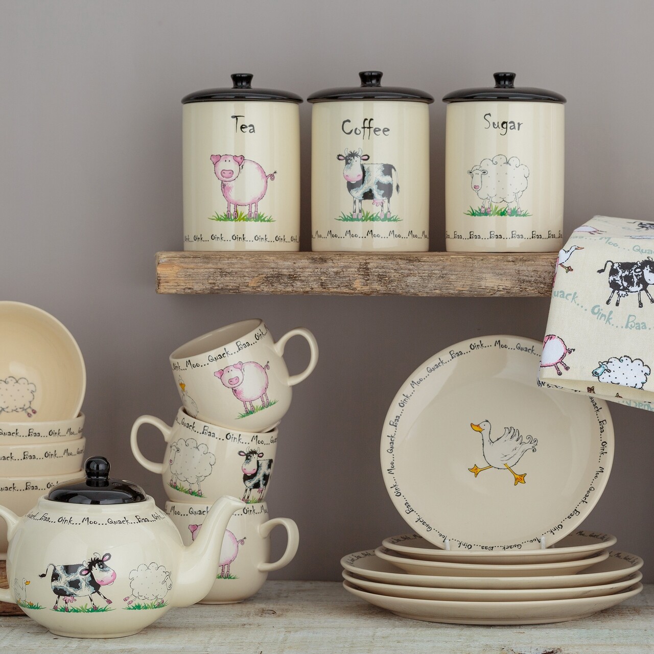 Recipient depozitare ceai Home Farm, 10.5 x 10.5 x 15.5 cm, ceramica, multicolor