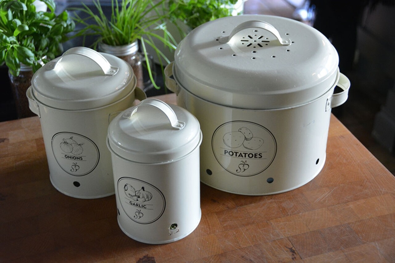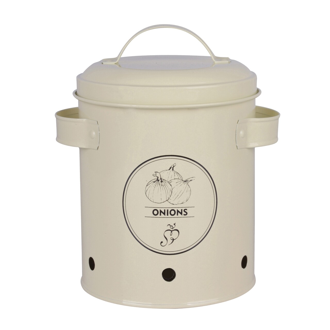 Recipient depozitare ceapa, Esschert, 14.6 x 17.3 x 19.6 cm, otel carbon, crem/negru