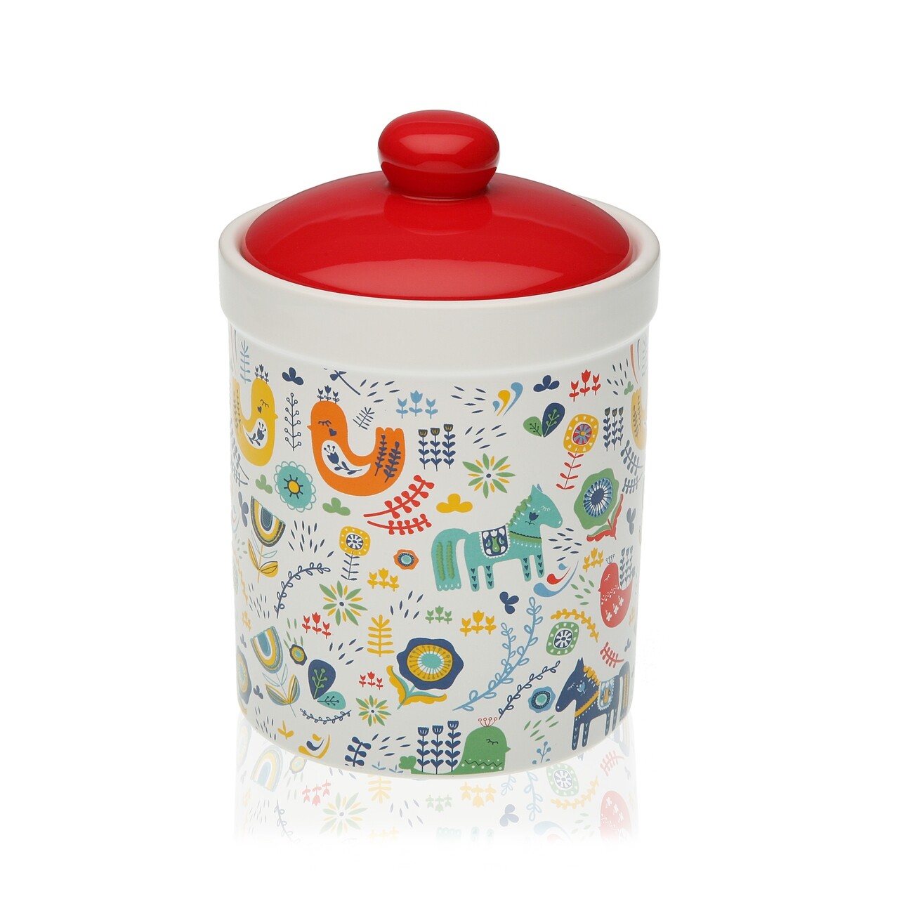 Recipient depozitare cu capac, Versa, Manaia, 11 x 15.1 cm, ceramica, multicolor