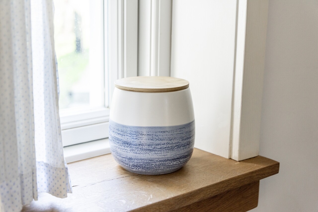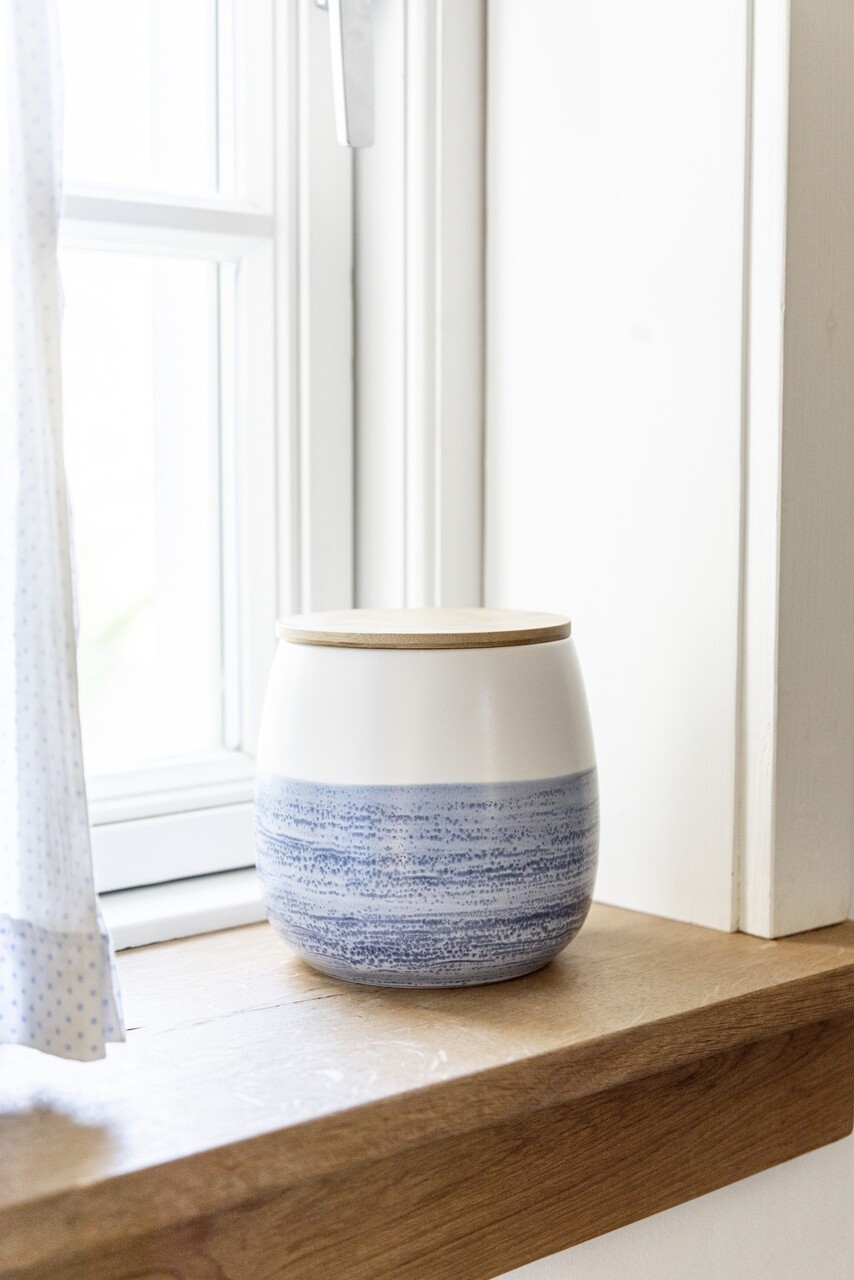 Recipient depozitare cu capac, Wenko, Mala, 1 L, 13 x 13.5 x 13 cm, ceramica/bambus