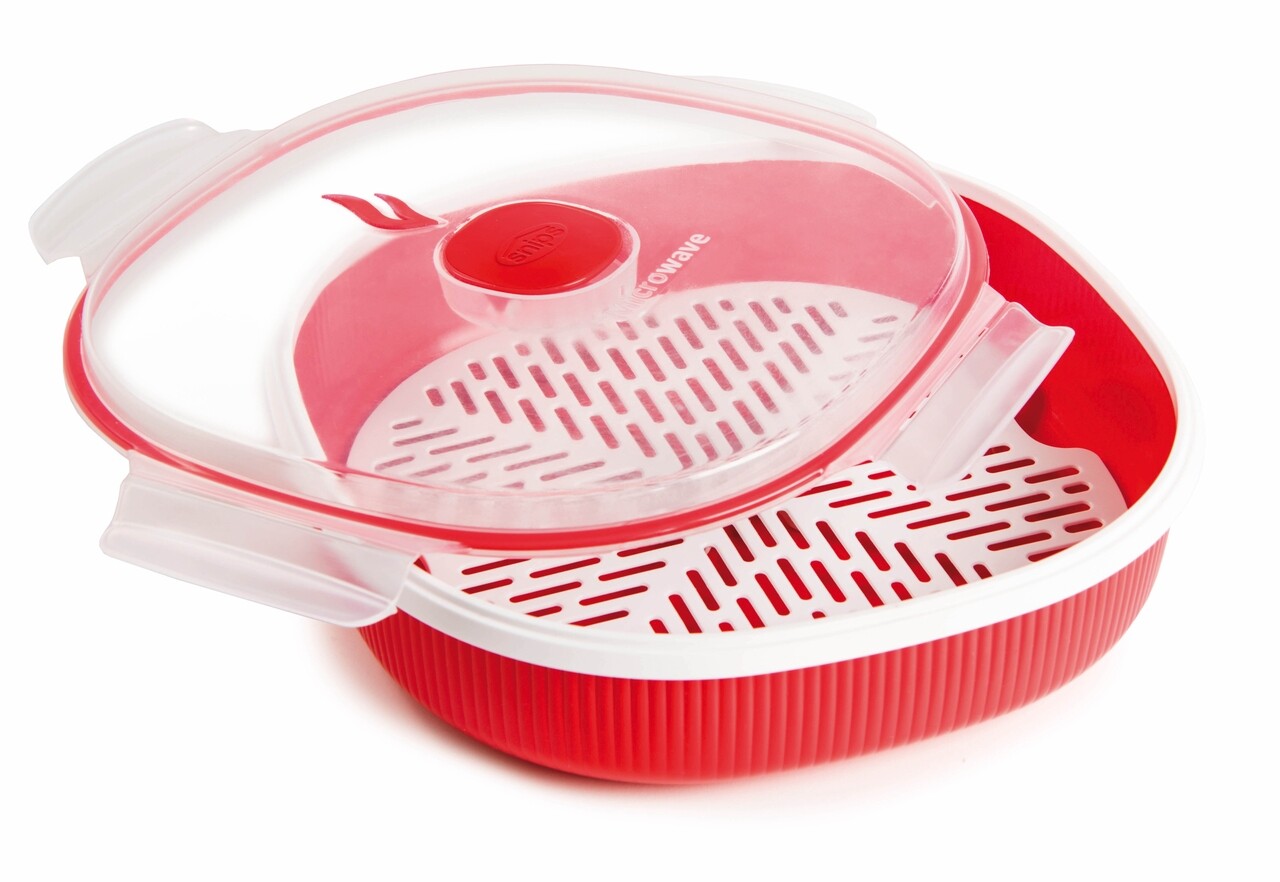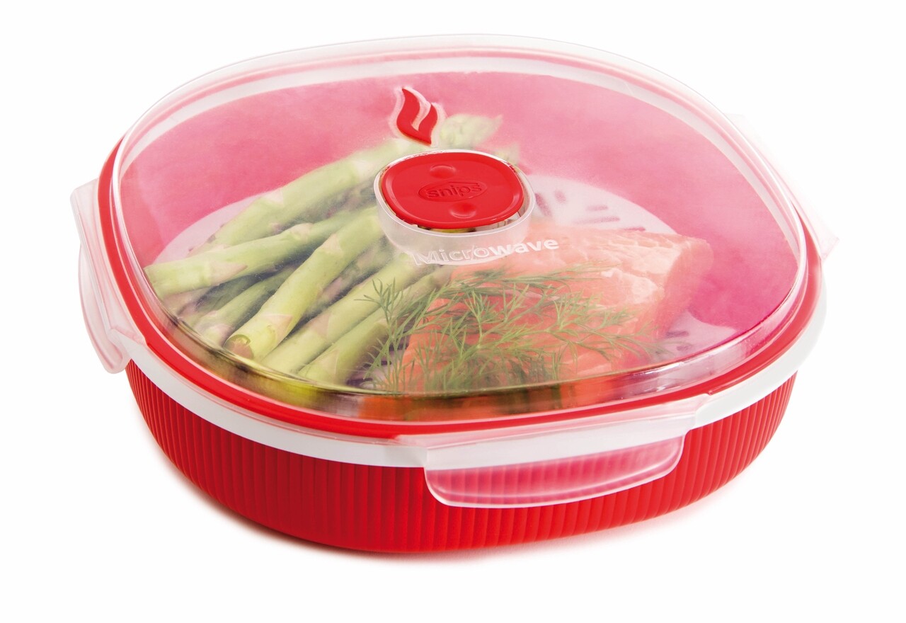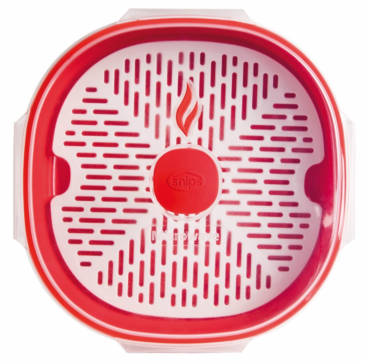 Recipient pentru gatit la aburi in cuptorul cu microunde, Snips Steamer, 2 L, polipropilena, rosu