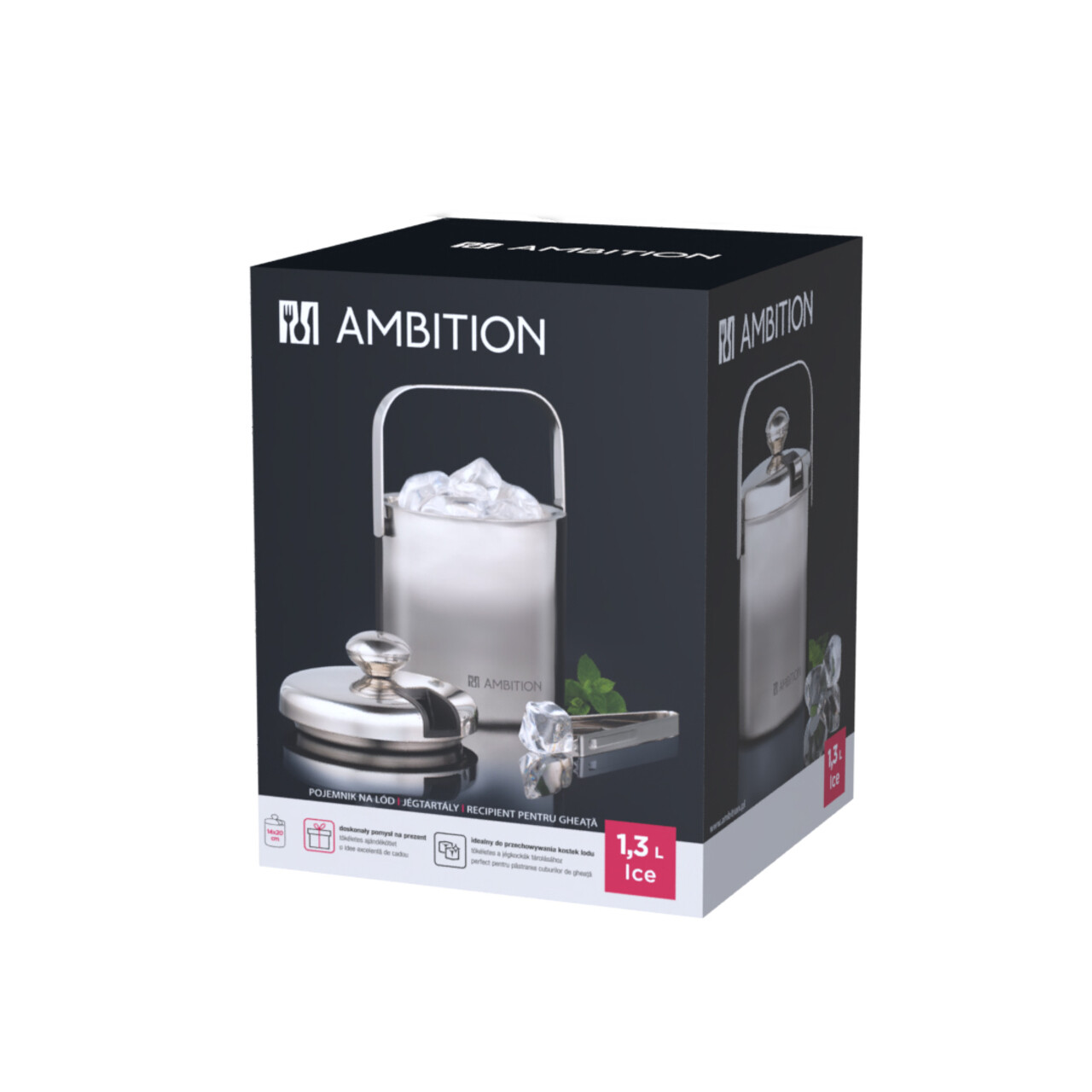 Recipient pentru gheata Ice, Ambition, 15x20 cm, 1.3 L, inox, argintiu