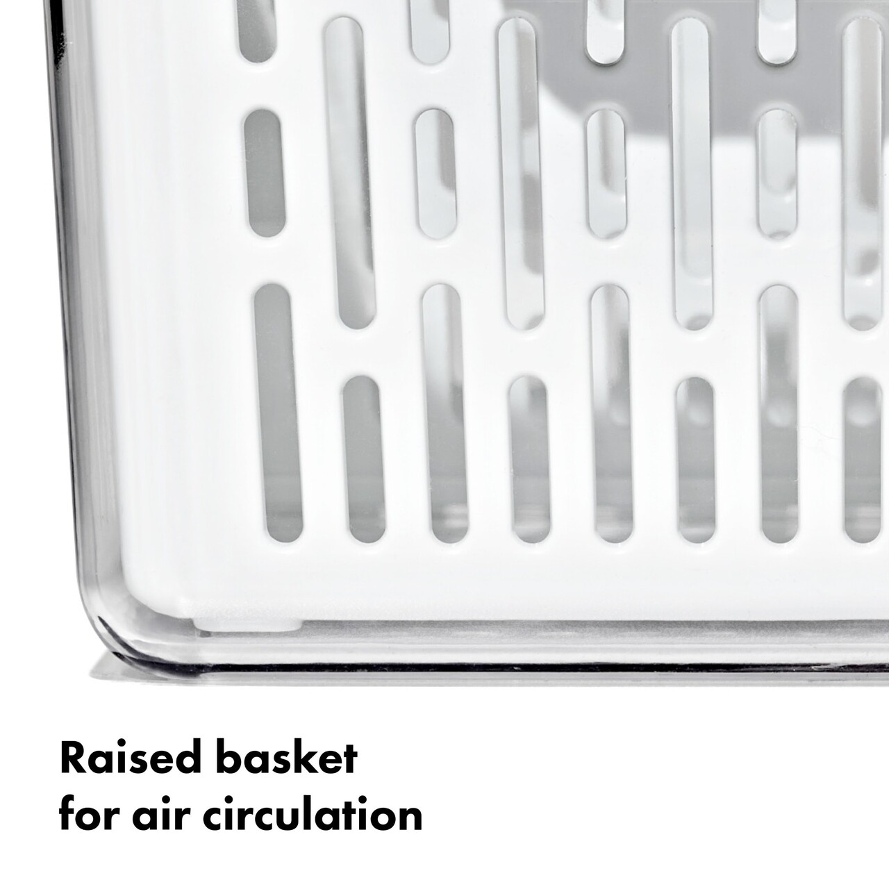 Cosul interior detasabil permite circulatia aerului pentru o prospetime mai lunga si serveste si ca strecuratoare pentru clatirea legumelor, In timp ce separatorul reglabil ajuta la reducerea risipei alimentare, Mentinand separat produsele.