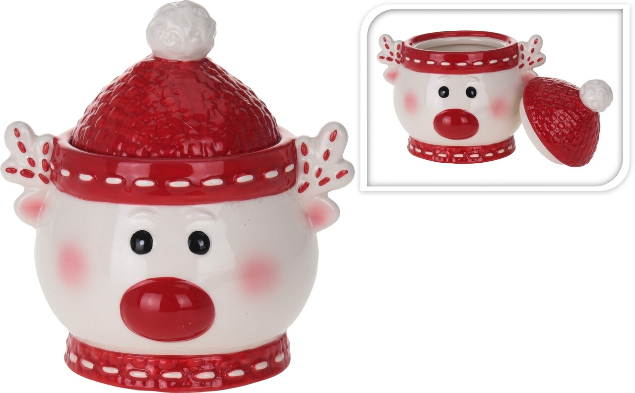 Recipient pentru zahar Reindeer, 11.5x10.5x12.5 cm, dolomit, alb/rosu