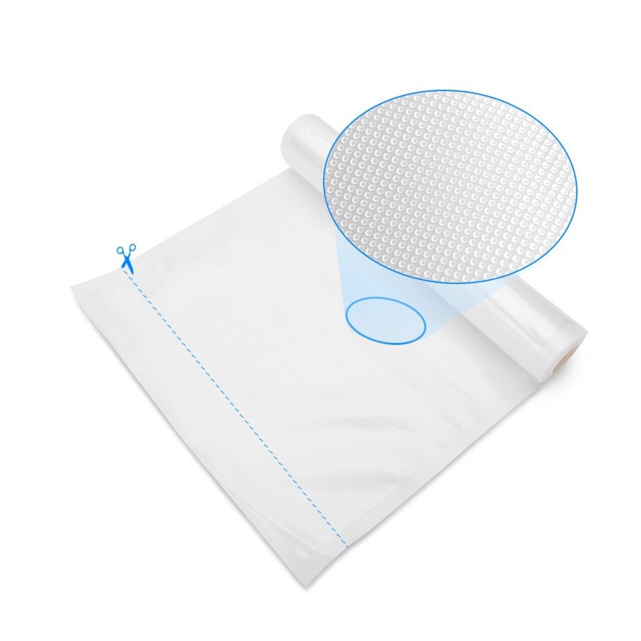 Rola pungi gofrate pentru ambalare in vid, Din plastic, Cu grosimea de 0,127 mm, Latime 28 cm, Lungime3 m.