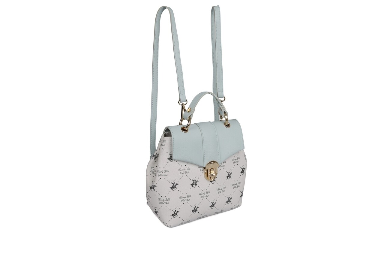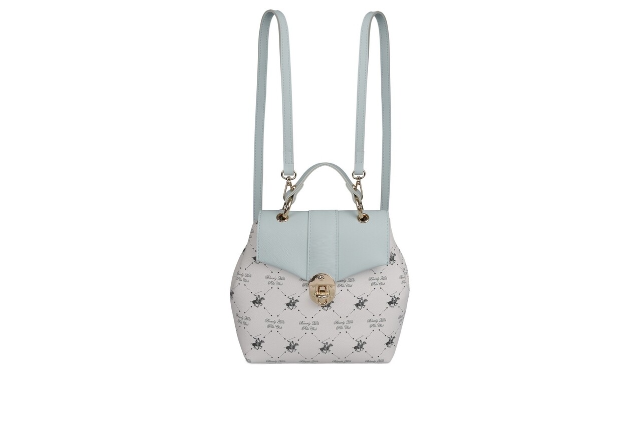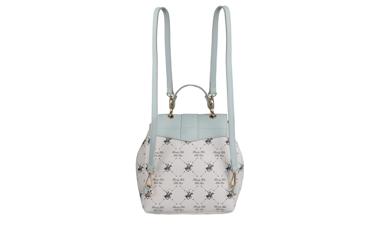 Rucsac Beverly Hills Polo Club, 622, piele ecologica, alb/turcoaz
