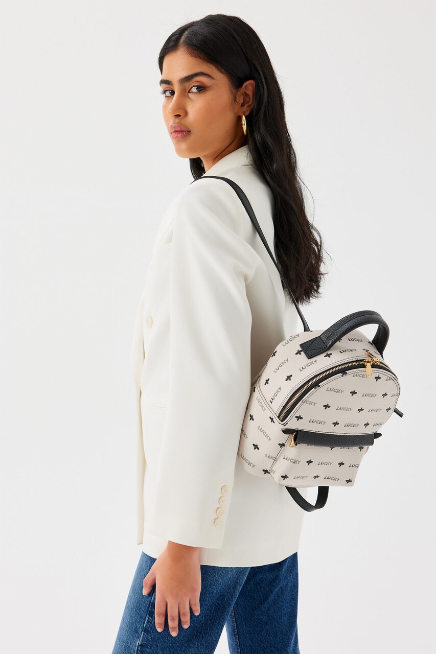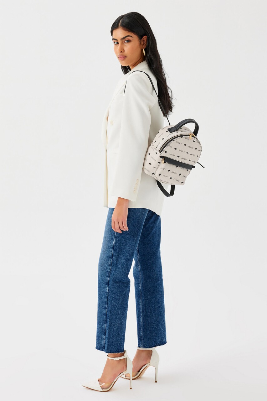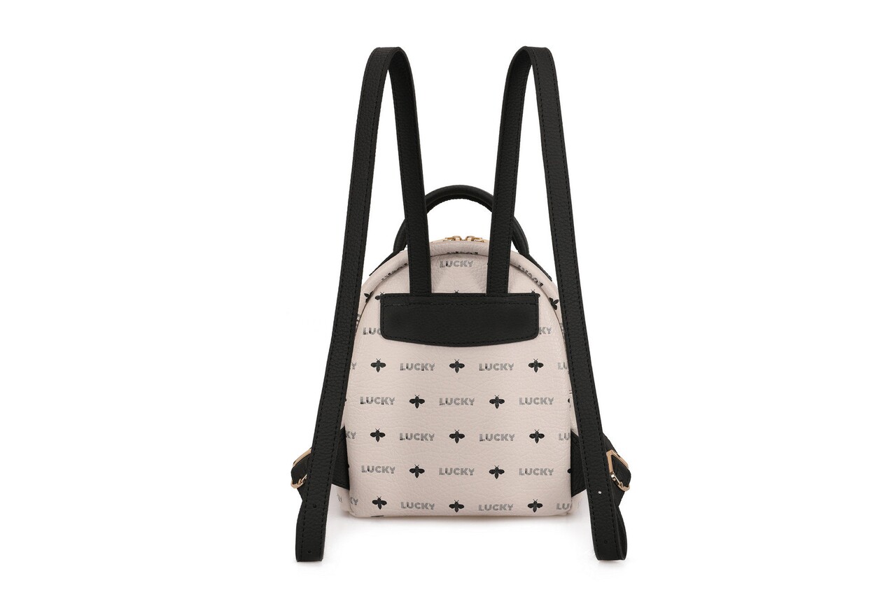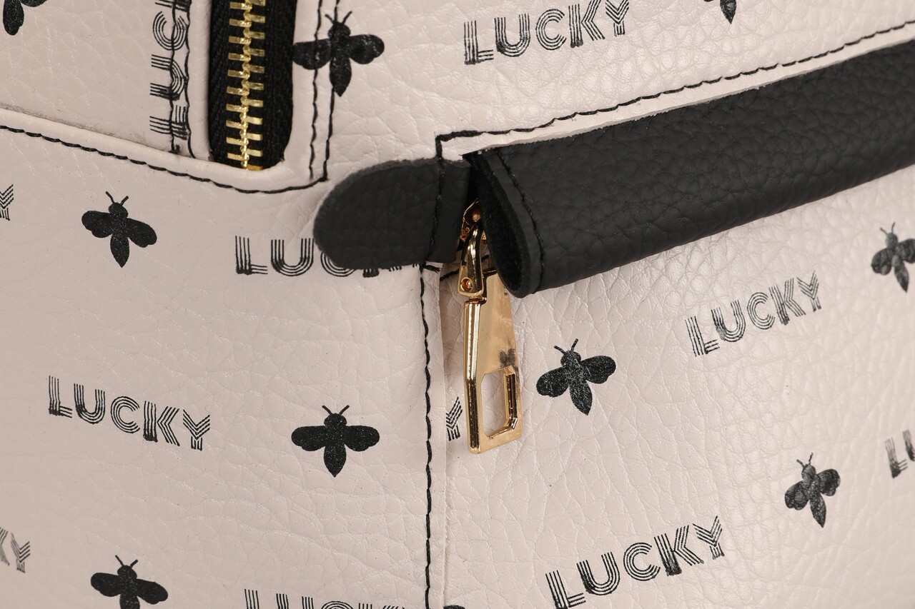 Rucsac, Lucky Bees, 338 Cream Black, piele ecologica, crem/negru