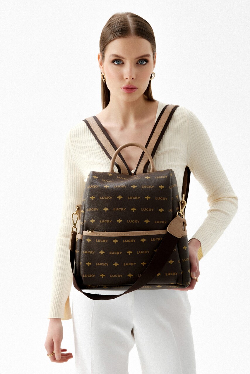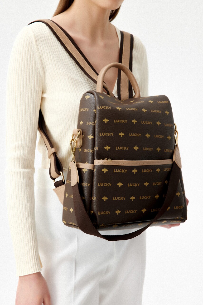 Rucsac, Lucky Bees, 920 Brown, piele ecologica, maro