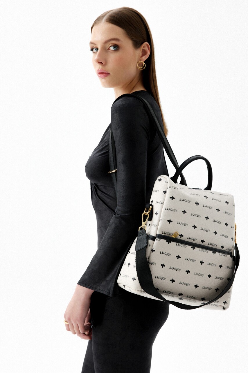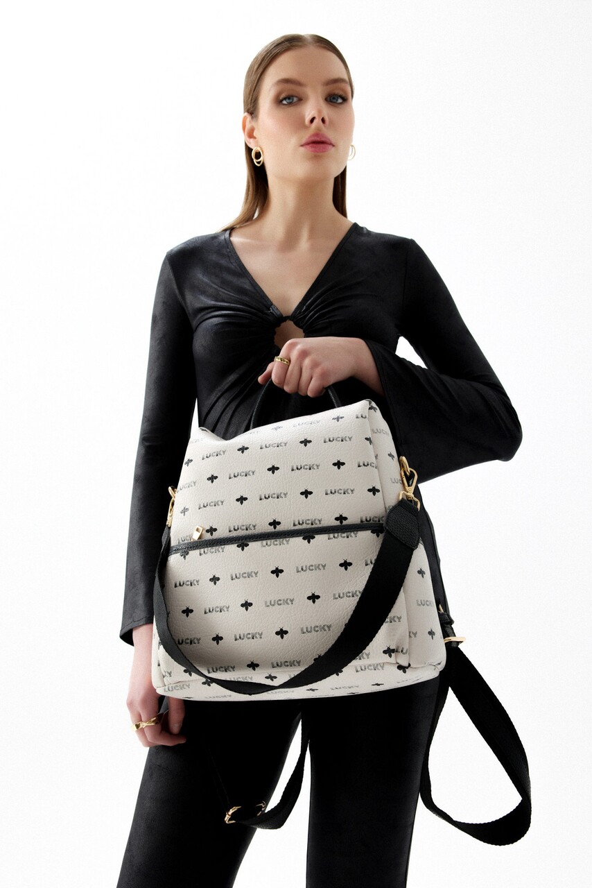 Rucsac, Lucky Bees, 920 White, piele ecologica, alb
