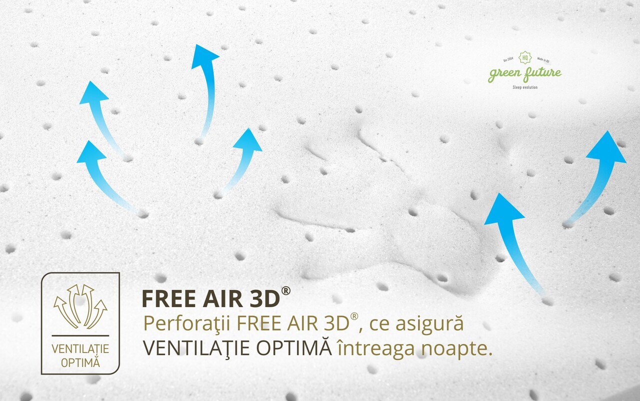 Sistemul 7Z Green Pocket® este completat de spuma elastica Green Form HD® cu celulatie deschisa care, avand proprietati ortopedice, asigura o pozitie naturala si corecta in timpul somnului, prevenind astfel durerile de spate sau cervicale.