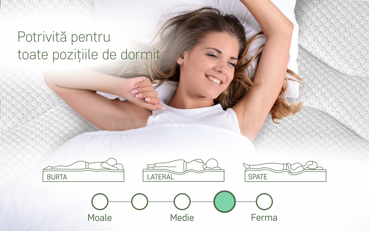 • Indicata pentru toate pozitiile de dormit: pe spate, pe lateral si pe stomac