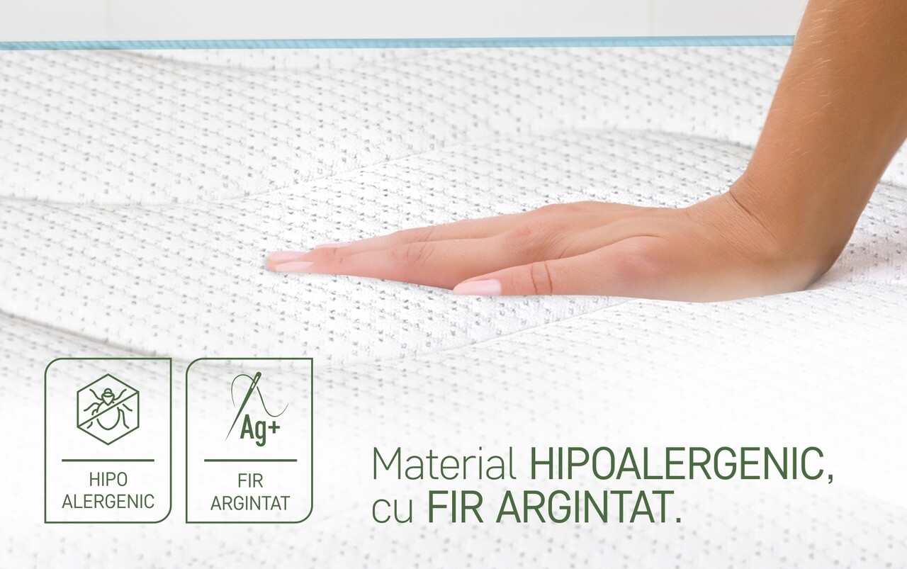 Proprietatile naturale ale ionilor de argint, binecunoscute in medicina curenta, asigura o suprafata curata pentru un somn sanatos fara micro-organisme.