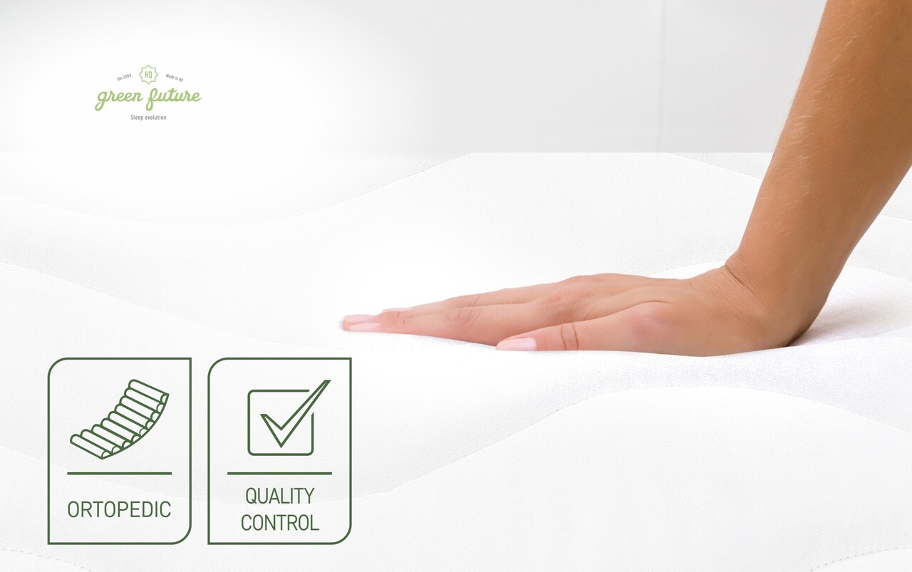 Baza saltelei din spuma elastica Green Form HD in combinatie cu un strat generos de fibre siliconice asigura o sustinere anatomica a corpului si o pozitie corecta a coloanei, fara dureri de spate in timpul somnului.