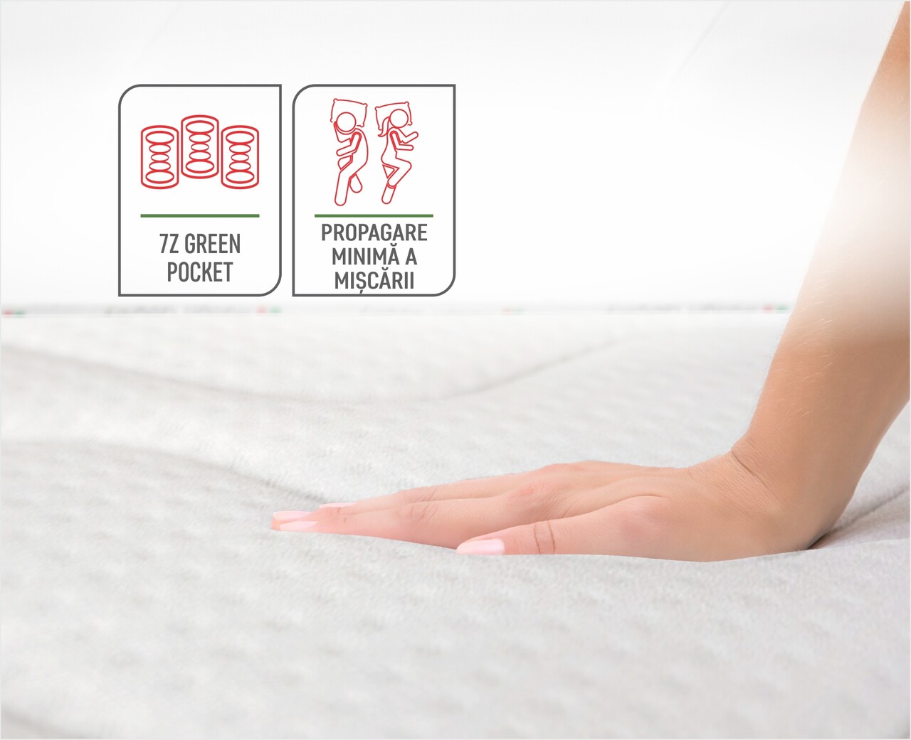 Tehnologia avansata a sistemului de Arcuri 7Z Green Pocket® impreuna cu cea a stratului de Memory Mirror Form® asigura un somn fara propagarea miscarilor partenerului.