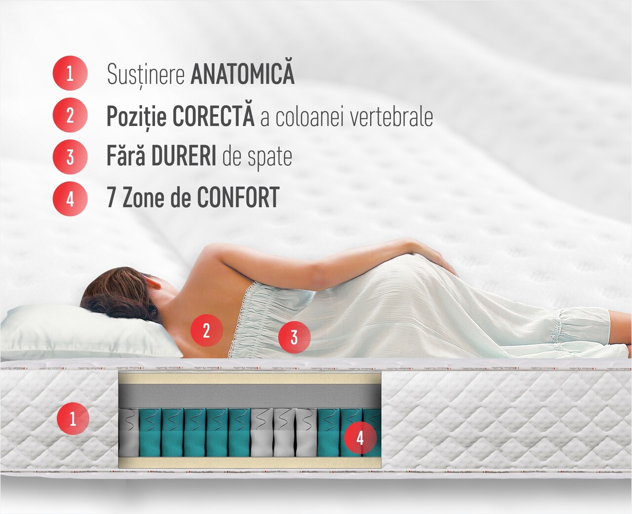 • Sistem arcuri impachetate individual tip Pocket 7 Zone de confort